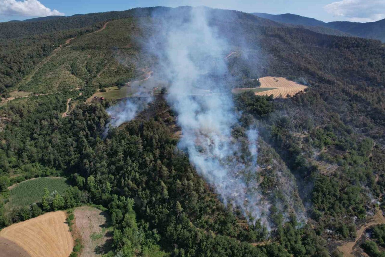 Sakarya’nın Taraklı ilçesinde ormanlık alanda büyük ölçüde kontrol altına alınan yangın, bazı bölgelerde yeniden alevlendi. Yangına ekiplerin hızlı müdahalesiyle kontrol sağlanırken, söndürme çalışmalarına bir helikopter de destek verdi. Alevler ve müdahale anları havadan görüntülendi.