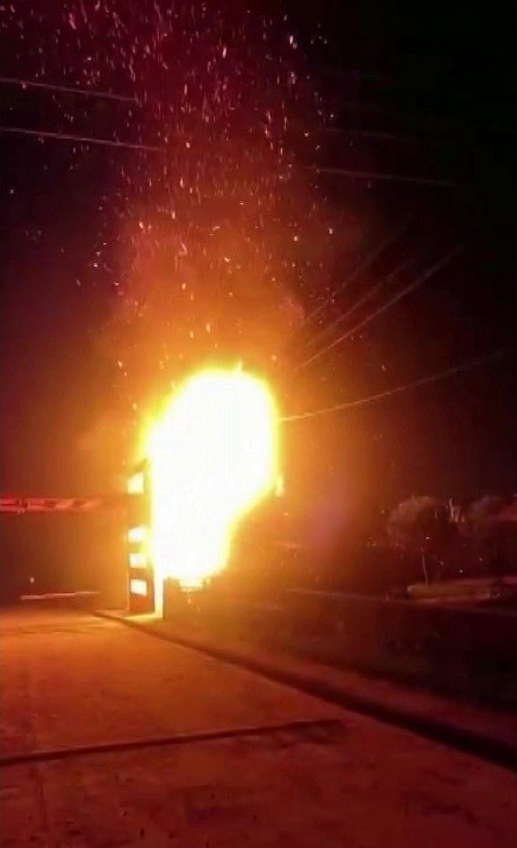 SAKARYA’NIN KAYNARCA İLÇESİNDE BULUNAN KAYNARCA MOBİLYA İHTİSAS ORGANİZE SANAYİ BÖLGESİ GİRİŞ KAPISINDA BULUNAN TRAFO PATLADI. TRAFONUN, ALEVLERE TESLİM OLDUĞU ANLAR CEP TELEFONU KAMERASI İLE KAYDEDİLDİ.