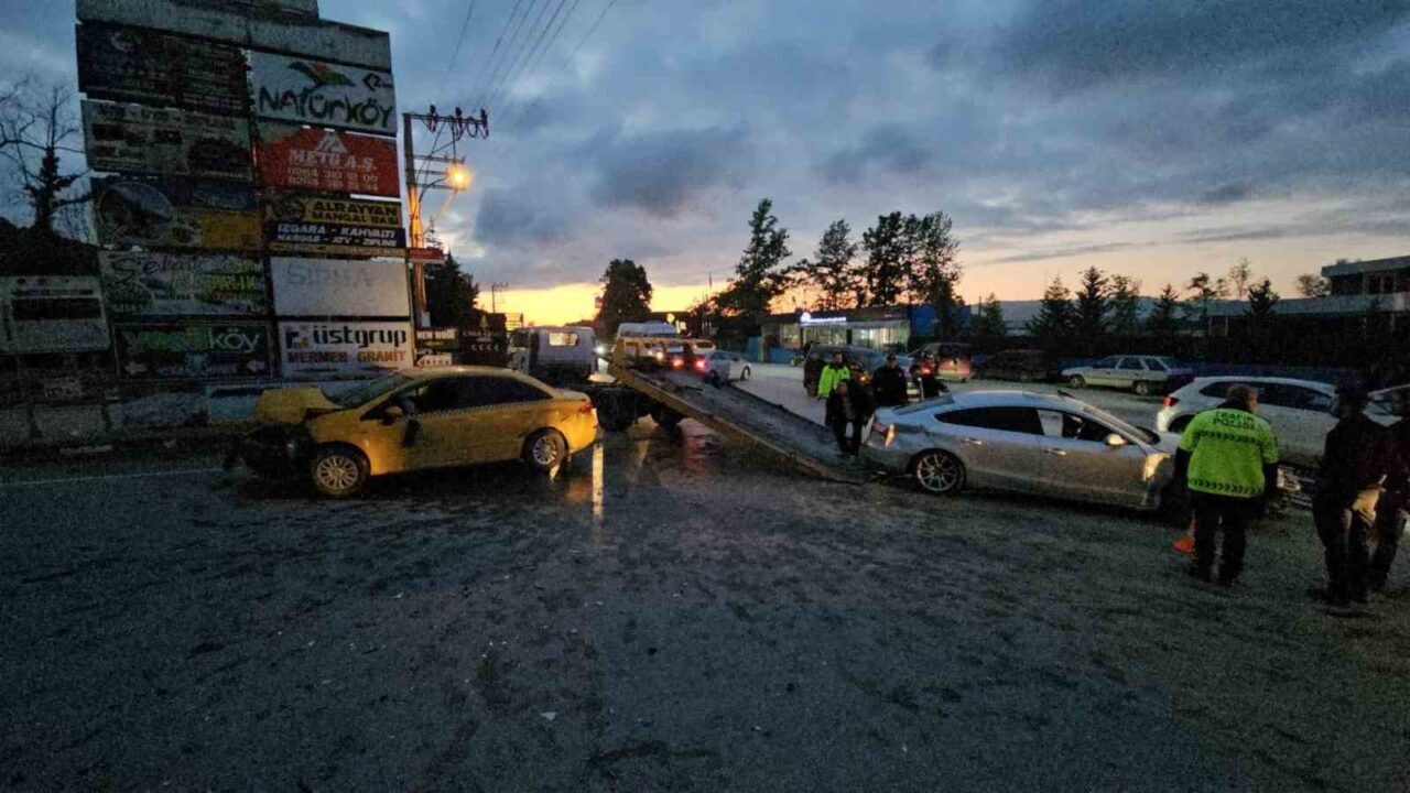 Sakarya’nın Sapanca ilçesinde ticari taksi ile otomobilin çarpışması neticesinde meydana gelen kazada 6 kişi yaralandı. Kaza anı güvenlik kamerasına yansıdı.