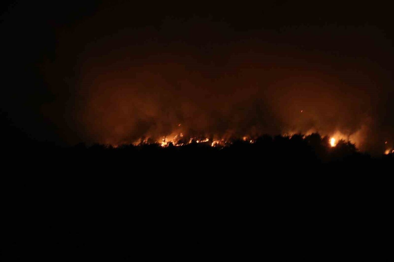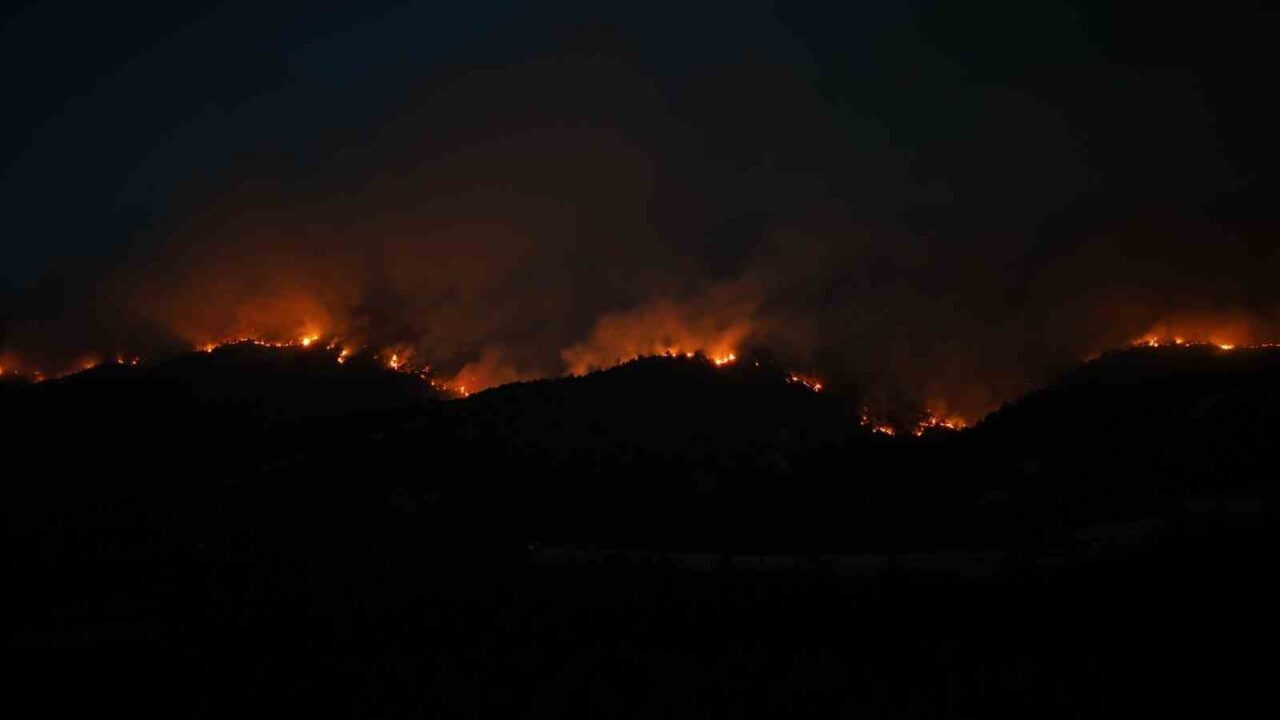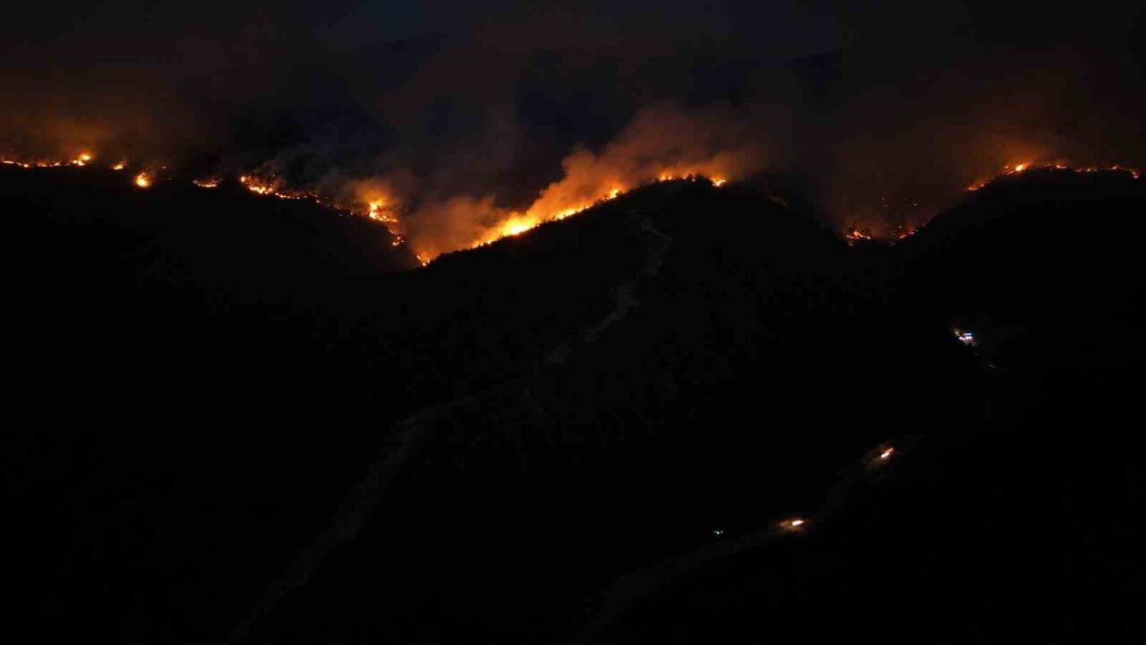 20 Temmuz günü akşam saat 17.15 sıralarında çıkan yangına, ilk andan itibaren ilgili tüm kurumlarla koordineli bir şekilde müdahale edildi. Yangının ikinci gününde ise söndürme çalışmalarına 12 helikopter ve 6 yangın söndürme uçağı ile havadan destek verilirken, karadan da çok sayıda arazöz ve iş makinesiyle personel büyük bir özveriyle görev icra ediyor. Geniş bir alana yayılan yangını söndürmek için mücadele veren ekiplere vatandaşlar da destek veriyor. Aradan geçen yaklaşık 28 saatin sonunda bazı bölgelerde yeniden alevlenme başlarken, alevlerin boyutu hava kararmaya başlayınca ortaya çıktı. Ekiplerin söndürmek için müdahale ettiği yangın havadan görüntülendi.