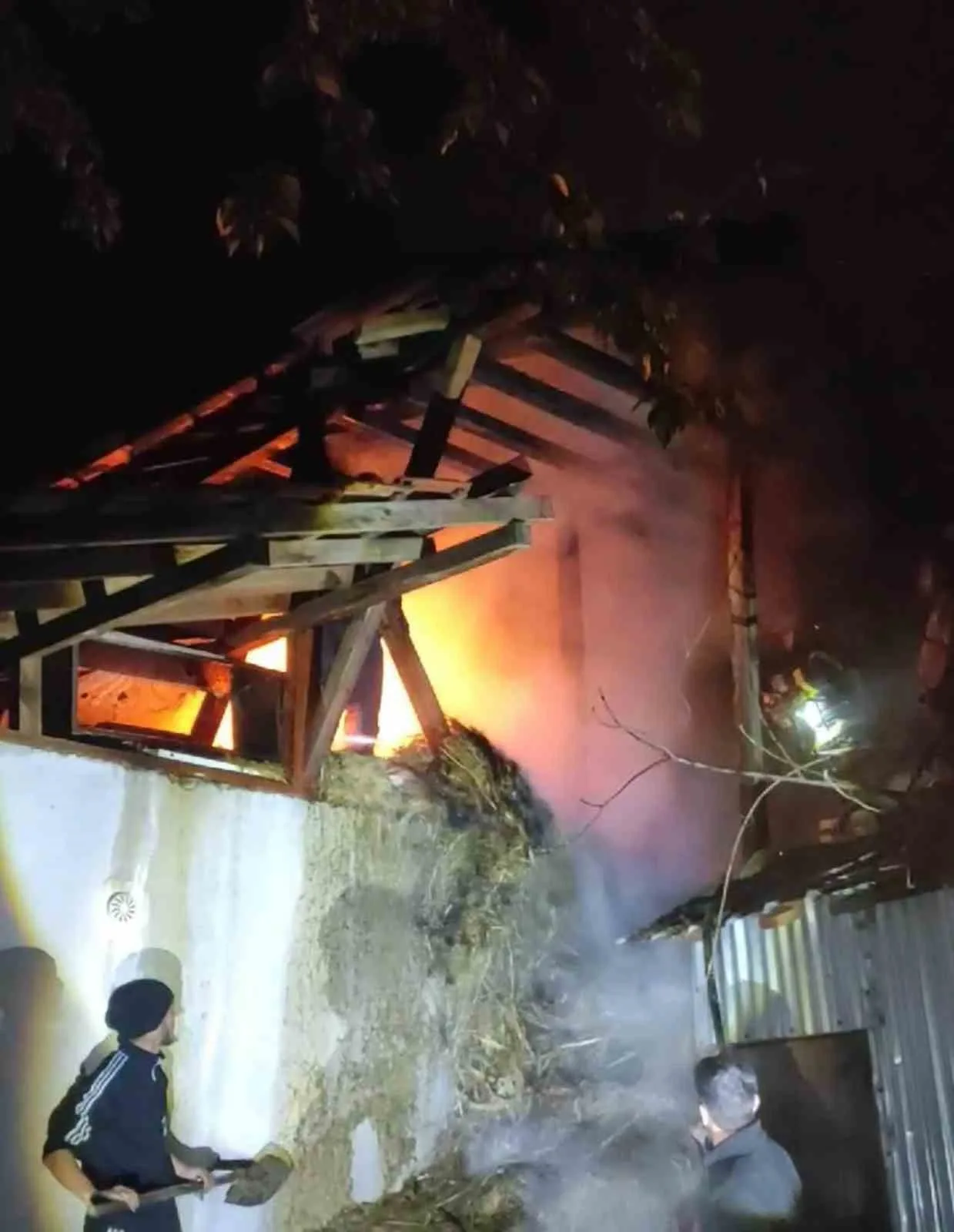 Sakarya’nın Akyazı ilçesinde iki katlı bir evin saman dolu çatı kısmında yangın çıktı. Çatının alev topuna döndüğü yangında mahalleli sokağa döküldü.