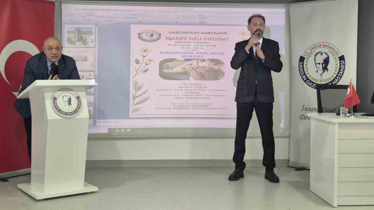 Samsun İşitme Engelliler Okulu eğitmenlerinden Yeminli Türk İşaret Dili Tercümanı Murat Tekin tarafından 2 hafta süreyle verilen eğitimlerin bir başlangıç olduğu ve kapsamının genişletileceği belirtildi. Hastane personeli aldığı eğitimleri işitme engelli bir hastanın, hastane birimleriyle işaret diliyle iletişim kurmasını konu alan bir tiyatro ile de gösterdi. Hastane personeli işaret dili ile İstiklal Marşı okudu.