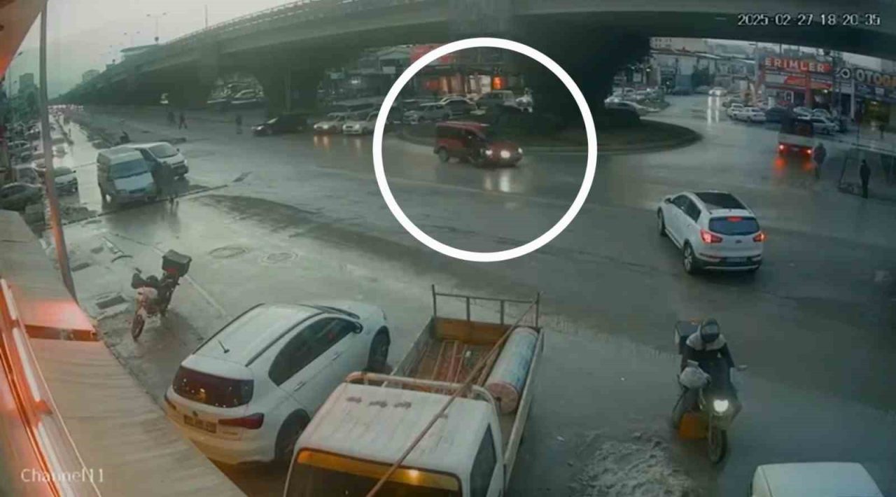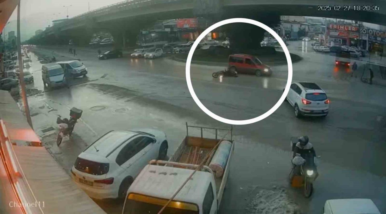SAMSUN’DA HAFİF TİCARİ ARAÇ İLE MOTOSİKLETİN ÇARPIŞMASI SONUCU 2 KİŞİNİN YARALANDIĞI KAZA ANI GÜVENLİK KAMERASINA YANSIDI.