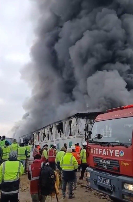 Olayın ardından ortaya çıkan yeni görüntülerde, konteynerlerin adeta bir alev topuna döndüğü, dumanların gökyüzünü kaplandığı ve işçilerin uyudukları yapının kül olmasına şahit olduğu anlar yer aldı.