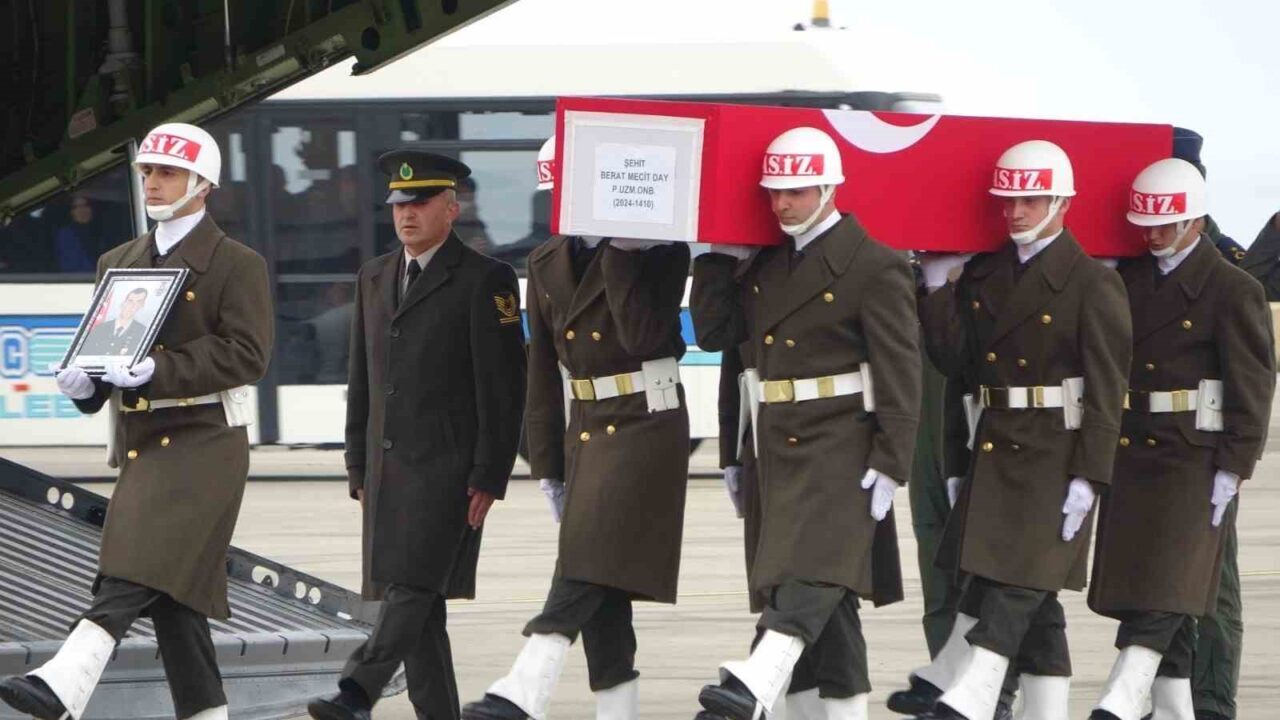 Irak’ın kuzeyinde Pençe-Kilit operasyonu bölgesinde teröristler tarafından düzenlenen saldırıda yaralanan ve tedavi gördüğü hastanede şehit olan Piyade Uzman Onbaşı Berat Mecit Day’ın cenazesi askeri uçakla Trabzon’a getirildi.