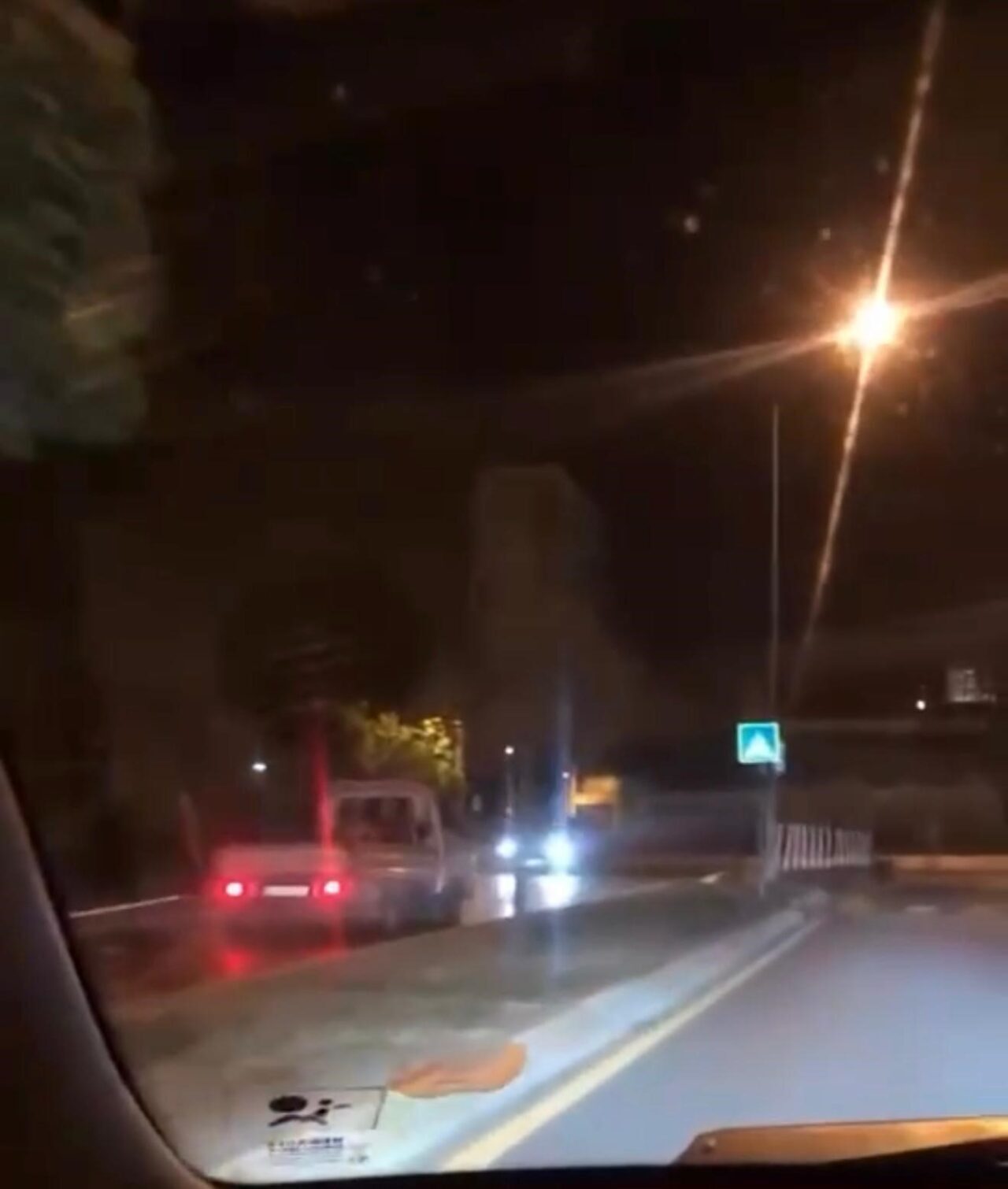 TERS ŞERİDE GİREREK İLERLEYEN VE DİĞER SÜRÜCÜLERİN UYARILARINA DA ALDIRIŞ ETMEYEN KAMYONET SÜRÜCÜSÜNÜN TEHLİKELİ YOLCULUĞU CEP TELEFONU KAMERASI İLE GÖRÜNTÜLENDİ