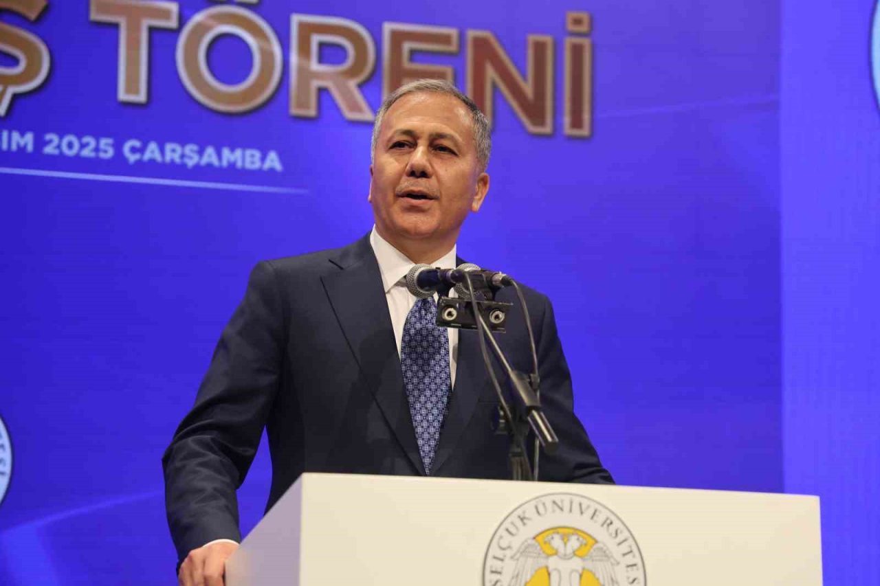 Programda konuşan İçişleri Bakanı Ali Yerlikaya üniversitelerin bir ülkenin aklını, vicdanını ve geleceğini inşa eden yapılar olduğunu belirterek, “Bu anlamda Selçuk Üniversitesi, yalnızca Konya’nın değil, Türkiye’nin de gurur kaynağıdır. Selçuk Üniversitesi’nin tarihi, Konya’nın köklü maarif geleneğinin bir devamıdır” dedi.