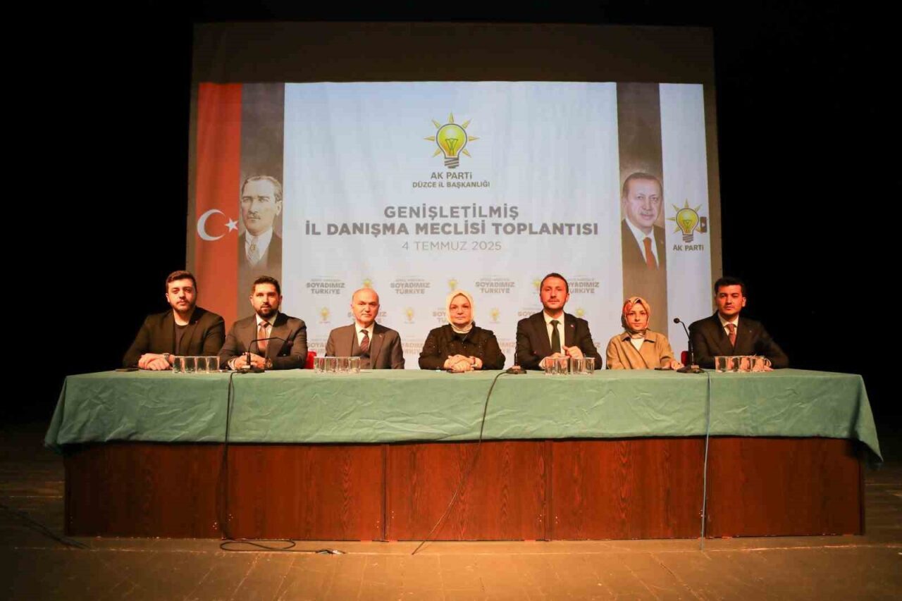 AK Parti Düzce Teşkilatı Temmuz Ayı Genişletilmiş İl Danışma Meclisi toplantısı Düzce Belediyesi Kültür Merkezi’nde yoğun katılımla gerçekleştirildi. AK Parti Düzce İl Başkanı Hasan Şengüloğlu’nun ev sahipliği yaptığı toplantıya AK Parti MKYK Üyesi ve Düzce Milletvekili Ayşe Keşir, Düzce Belediye Başkanı Dr. Faruk Özlü kadın ve gençlik kolları başkanları, İlçe ve belediye başkanları, il ve ilçe teşkilat üyeleri ile çok sayıda partili katıldı.