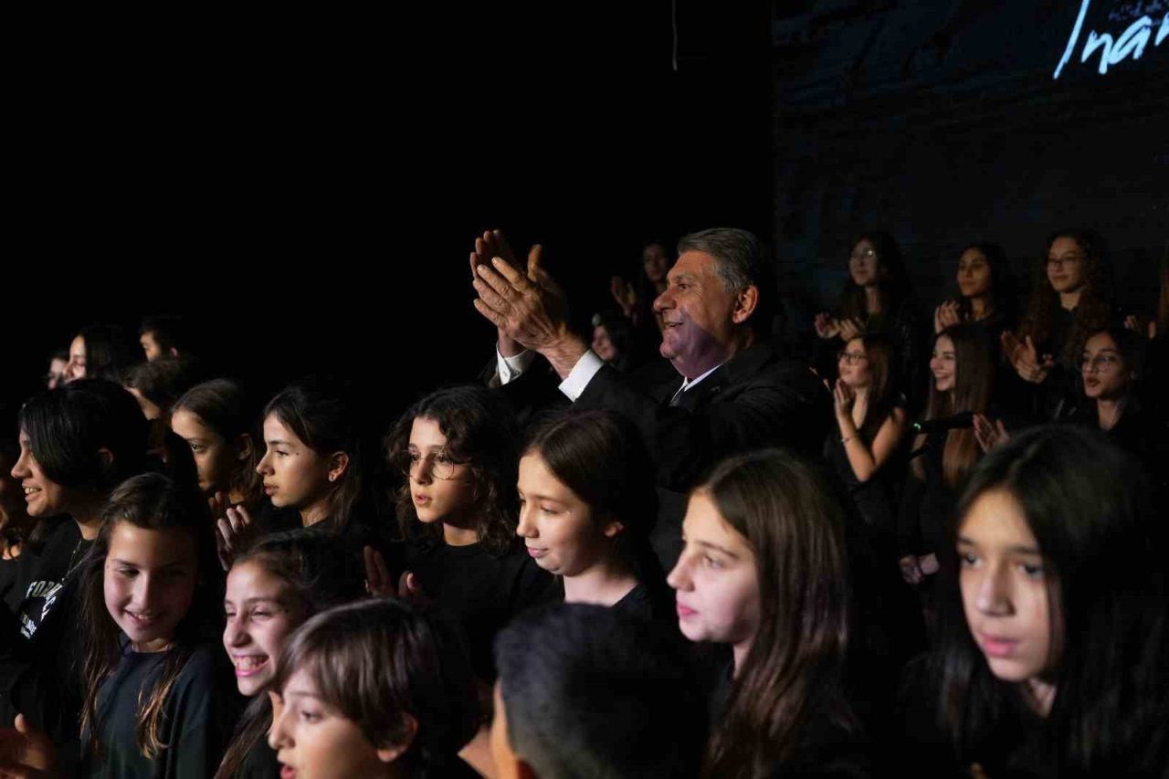 Başkan Serdal Adalı, konuşmasının ardından öğrencilerle günün anısına hatıra fotoğrafı çektirdi.