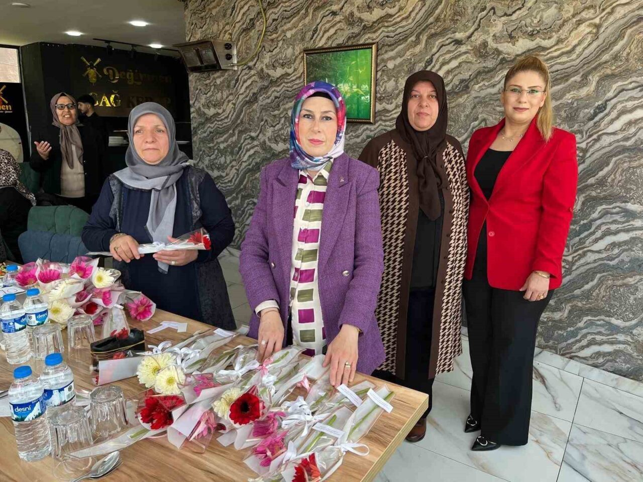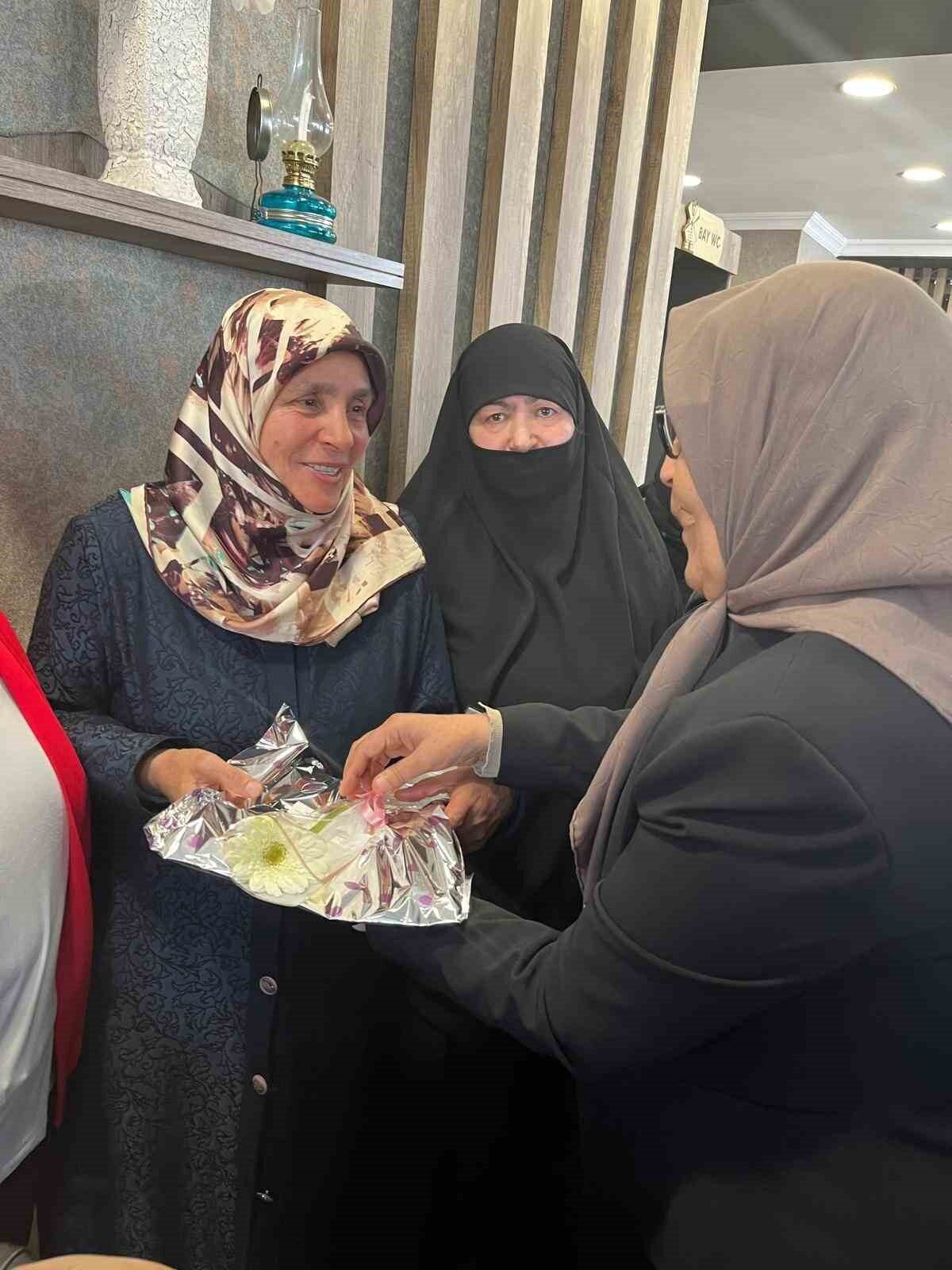 Yemek programında şehit yakınlarına çiçek hediye edildi.
