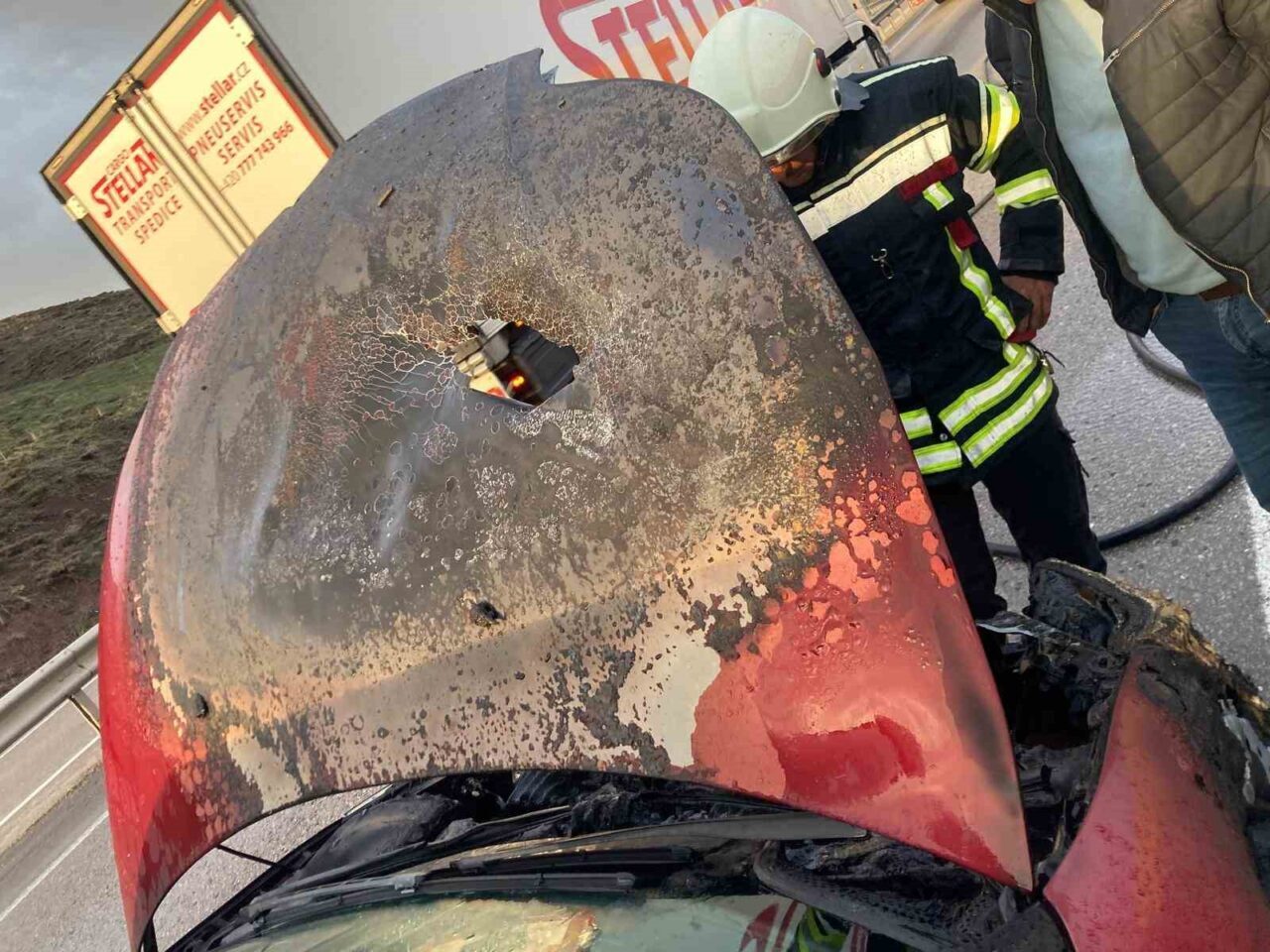 Alınan bilgiye göre Erzincan’dan Erzurum istikametine seyir halinde olan Bülent K. idaresindeki 25 AAT 442 plakalı Citroen marka otomobilden, Kükürtlü köyü mevkiine geldiği esnada bir anda dumanlar yükselmeye başladı. Otomobili hemen yok kenarına park eden sürücü araçtan indi. Aynı mevkide karşı şeritteki yanan tırı söndürme ve soğutma çalışması yapan Erzurum Büyükşehir Belediyesi Aşkale itfaiye ekipleri direkt otomobile müdahale etmeye başladı. Motor kısmında başlayan yangın itfaiye ekiplerinin gayreti ve özverili çalışmaları sayesinde kısa sürede söndürüldü.