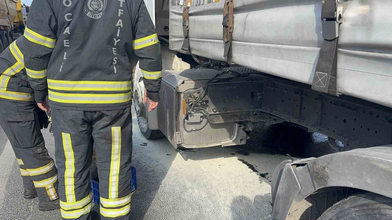 Kocaeli’nin Gebze ilçesinde seyir halindeyken motor kısmından alev alan tırda yangın çıktı. İtfaiye ekiplerinin müdahalesiyle alevler kısa sürede kontrol altına alındı.