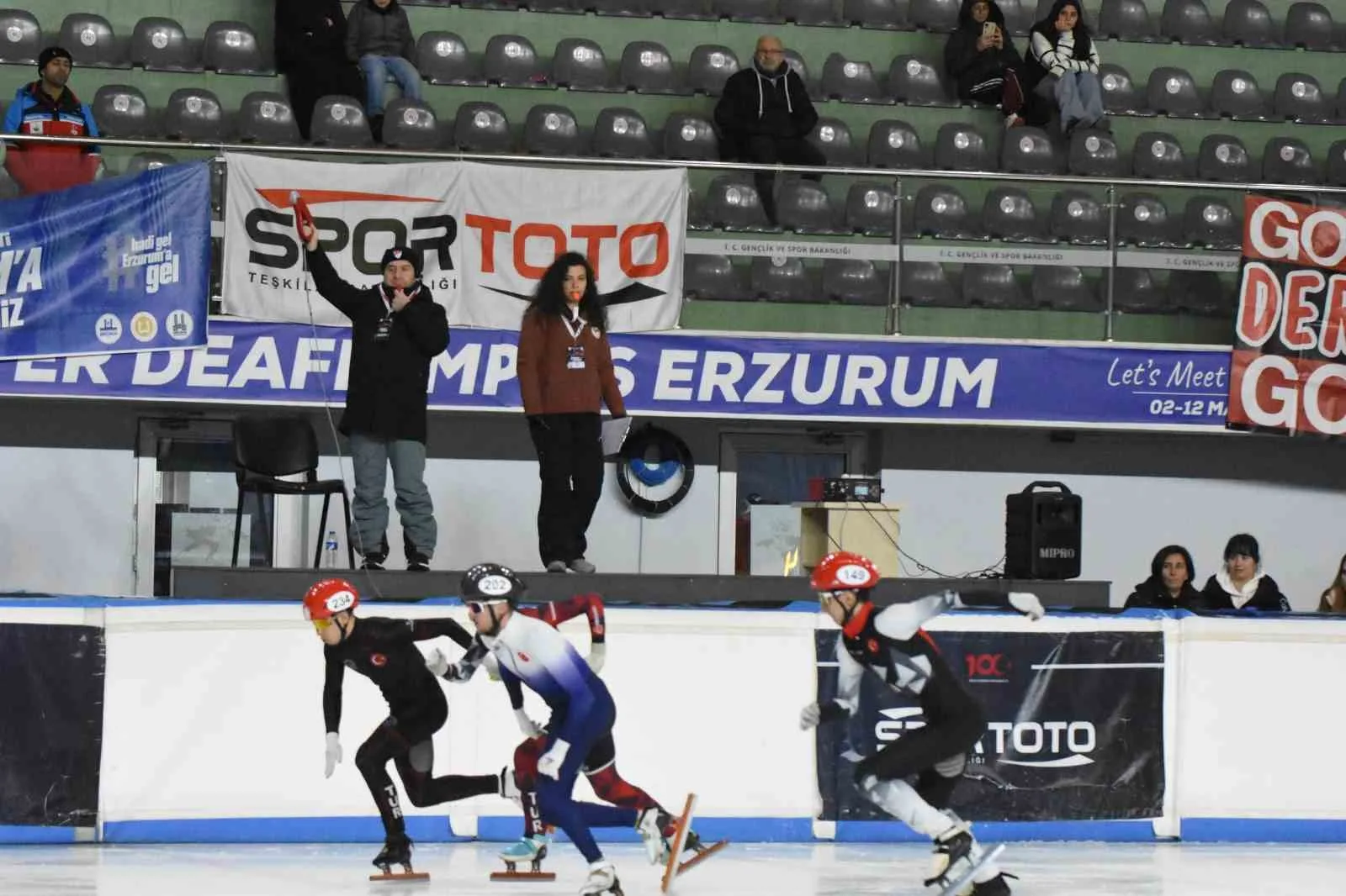 Türkiye Buz Pateni Federasyonu tarafından düzenlenen Short Track Türkiye Şampiyonası, Erzurum’da yapılıyor.