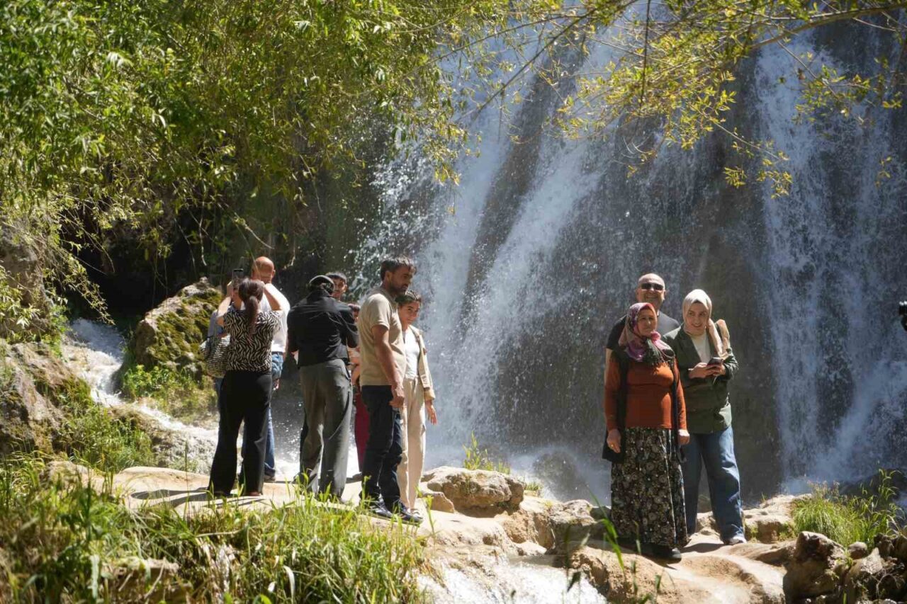 Manzarasında fotoğraf çektirmek ya da öz çekim yapmak isteyen birçok kişinin adeta sıraya girdiği şelaleye gelen ziyaretçiler, şelale çevresinde piknik yapma imkanı da buluyor.
