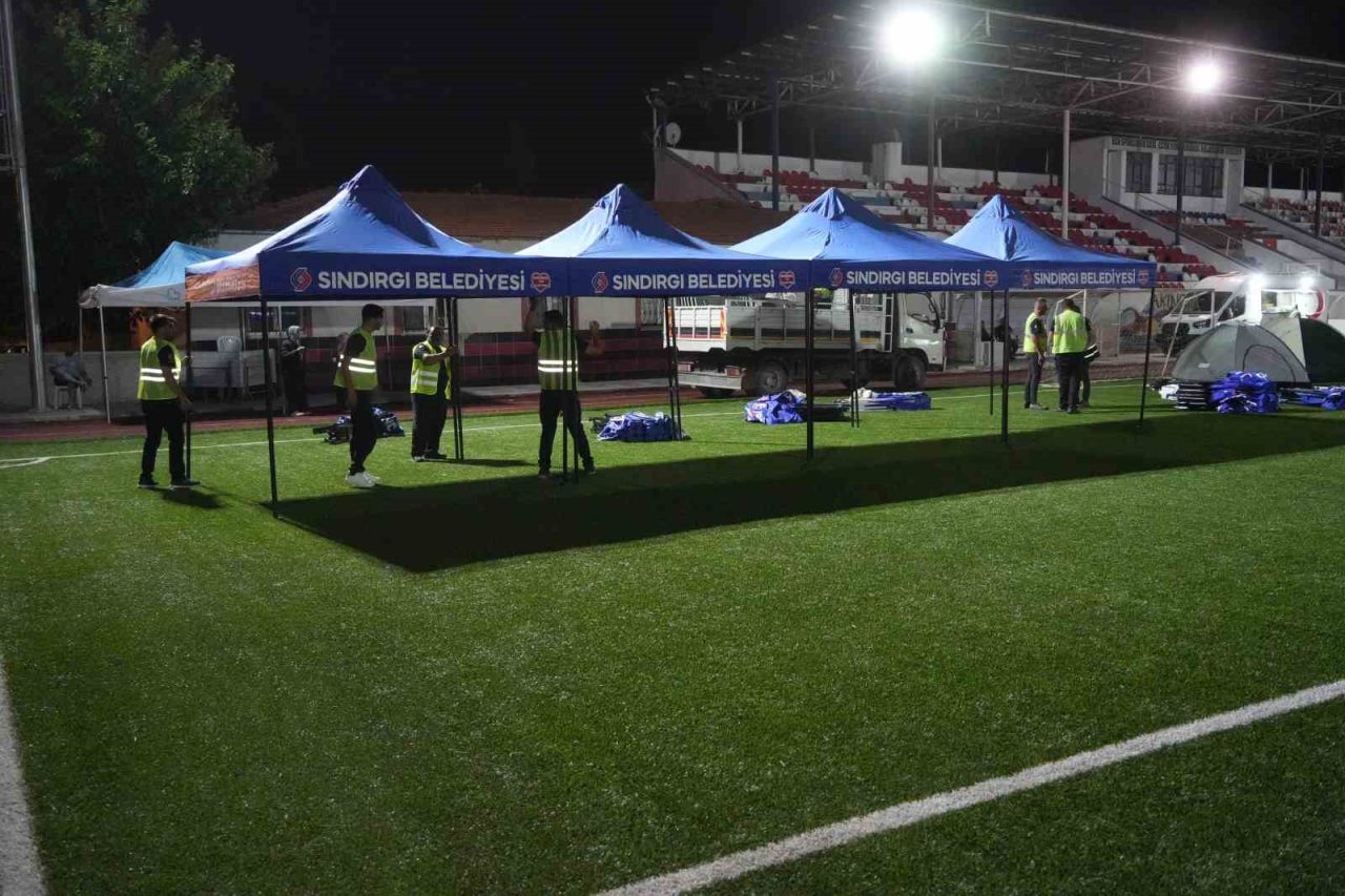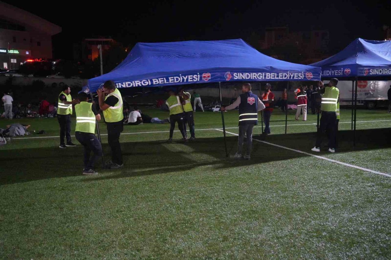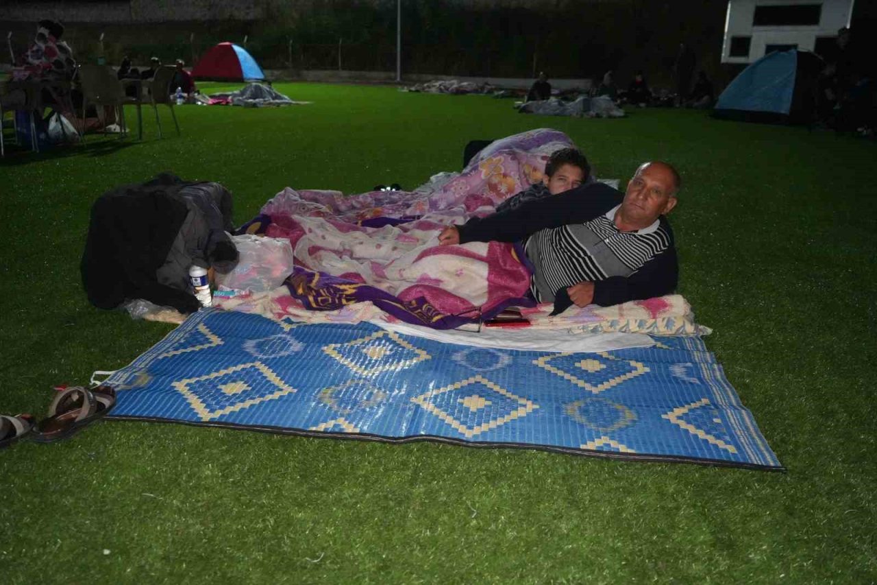 Öte yandan evlerinde kalmak istemeyen vatandaşlar, geceyi Sındırgı Atatürk Stadyumu’nda geçirdi. Kimi vatandaşlar stadyum içinde çadır kurarken, kimileri ise evlerinden getirdikleri battaniye, hasır ve yastıklarla kendilerine yatak yaptı.