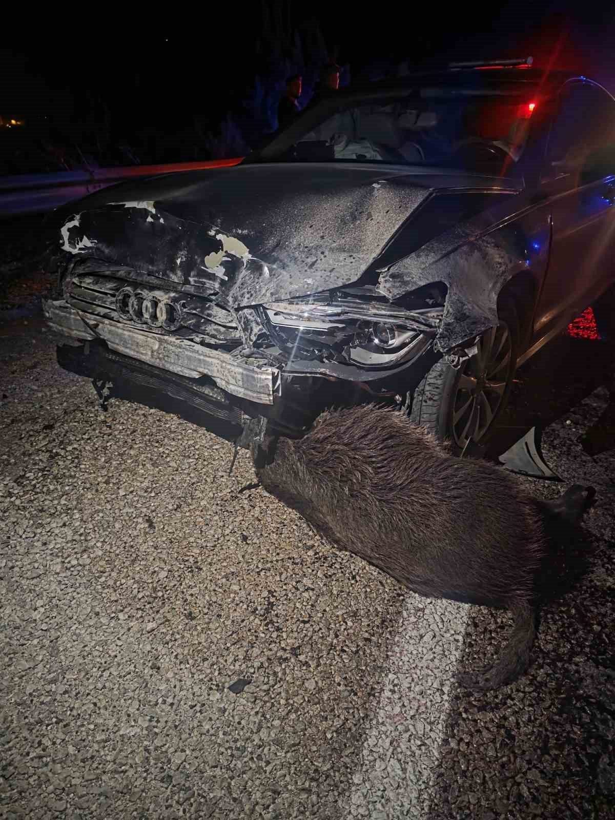 Kastamonu’nun Hanönü ilçesinde, Sinop Belediye Başkanı Metin Gürbüz’ün bulunduğu makam aracının çarptığı 12 domuz telef oldu. Başkan Gürbüz, kazadan yara almadan kurtuldu.