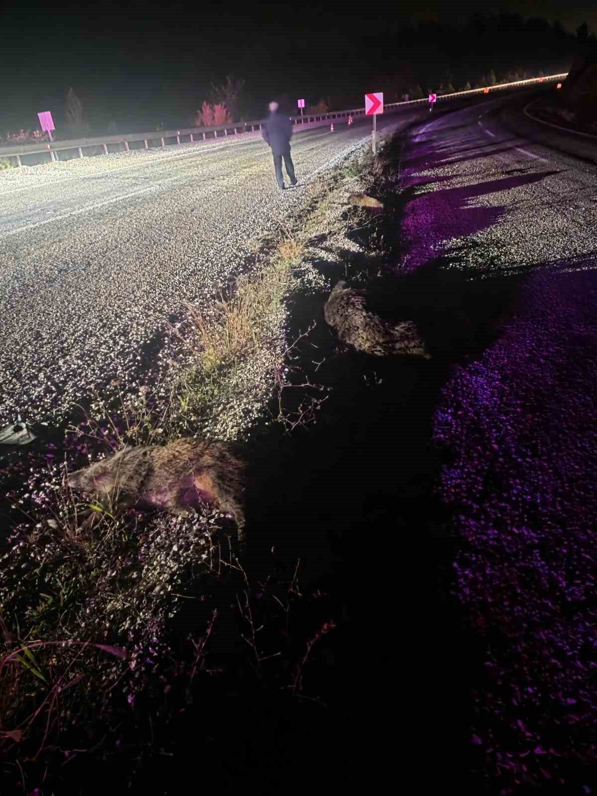 Telef olan domuzların ve aracın kaldırılmasının ardından yol trafiğe açıldı.