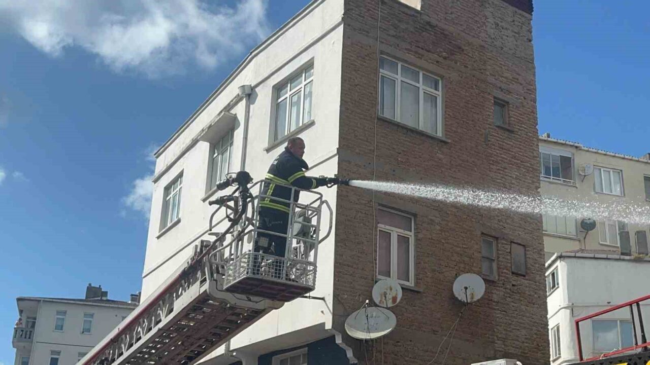 SİNOP’TA BİR İŞLETMENİN BACASINDA ÇIKAN YANGIN PANİK YARATTI.