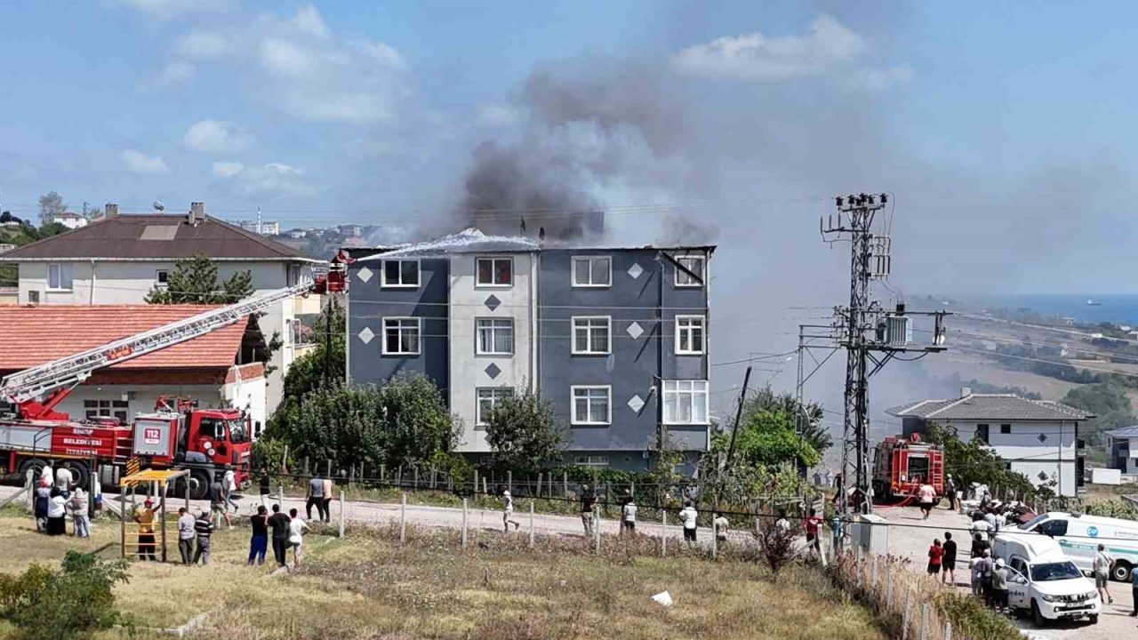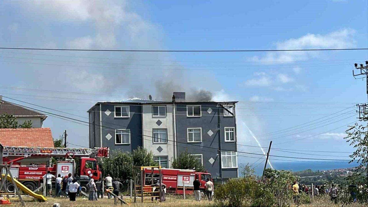 Sinop’ta üç katlı bir binanın çatı katında yangın çıktı.