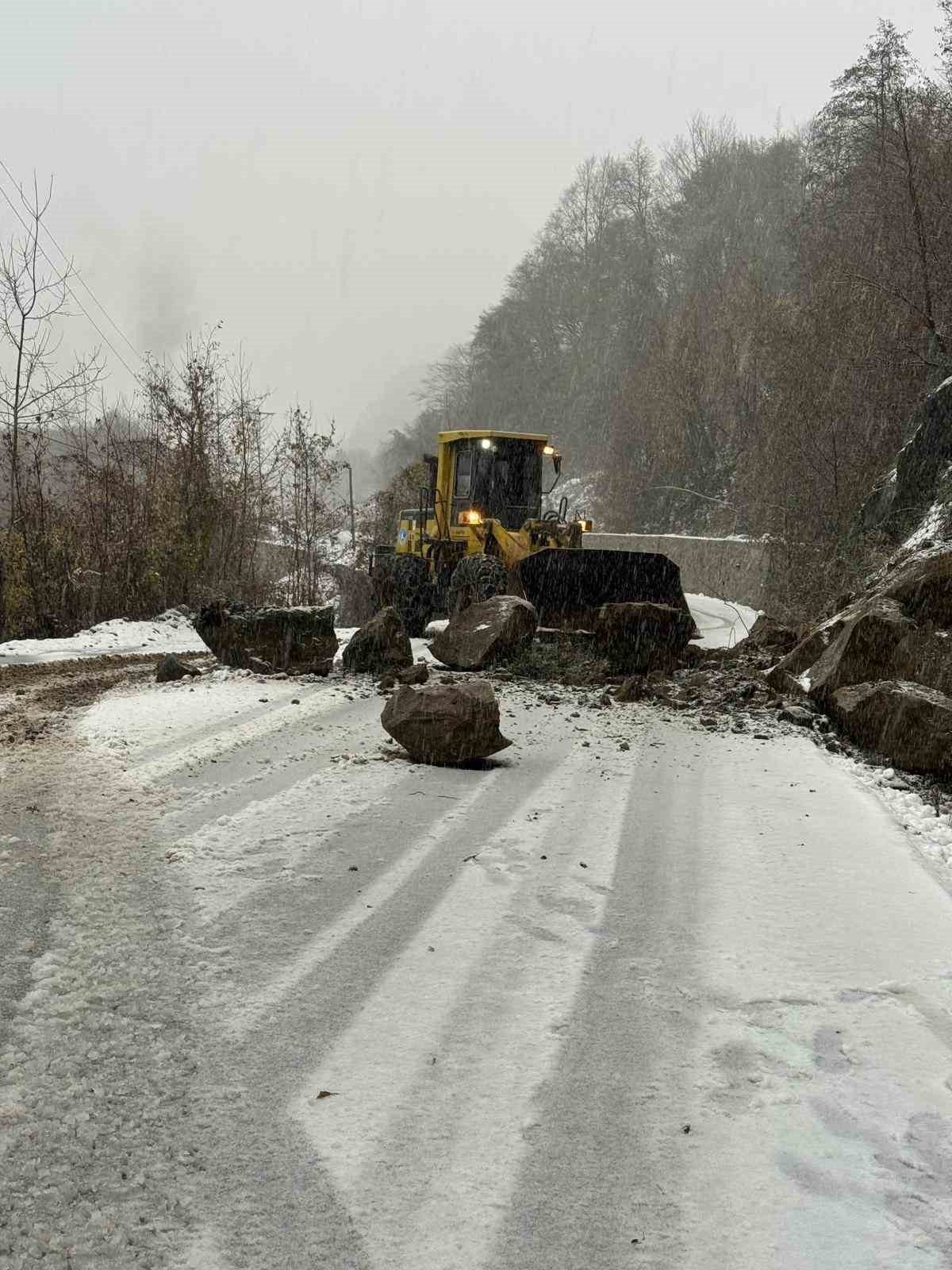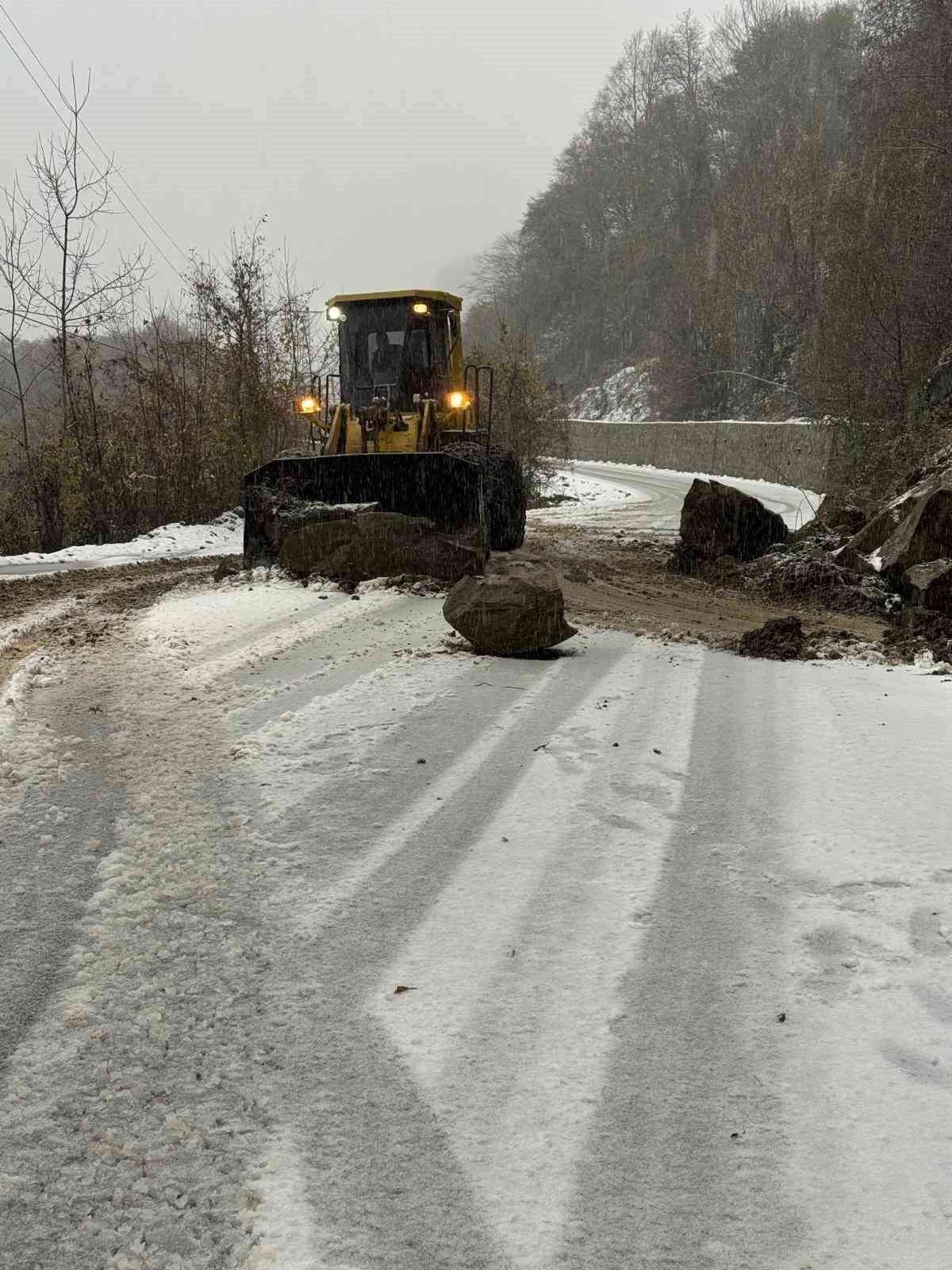 Olayın bildirilmesi üzerine İlçe Özel İdaresi ekipleri hızla bölgeye sevk edildi. Ekiplerin iş makineleriyle yaptığı çalışmalar sonucunda yola düşen toprak ve kaya parçaları temizlenerek yol yeniden güvenli şekilde ulaşıma açıldı.