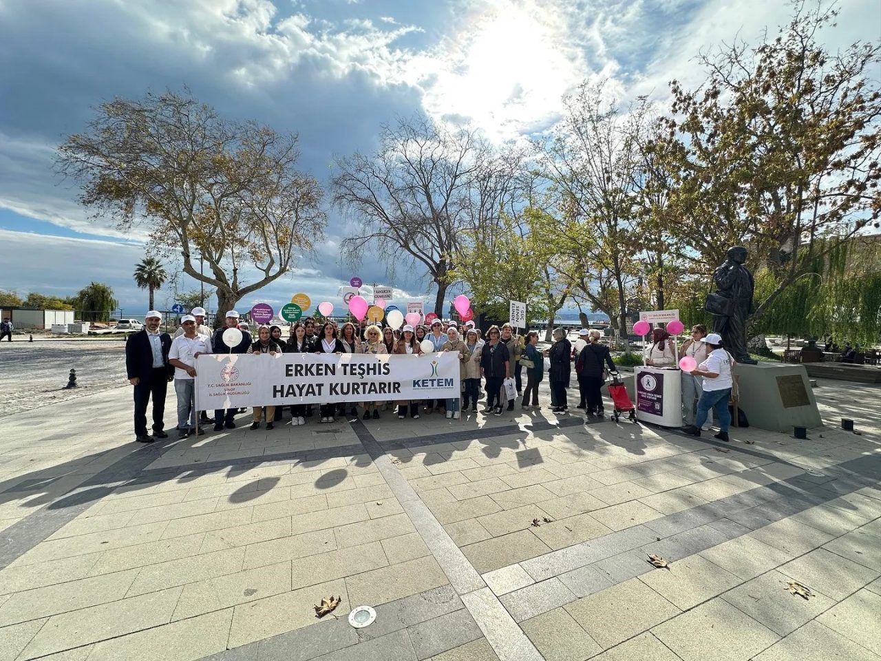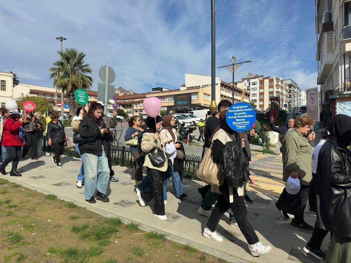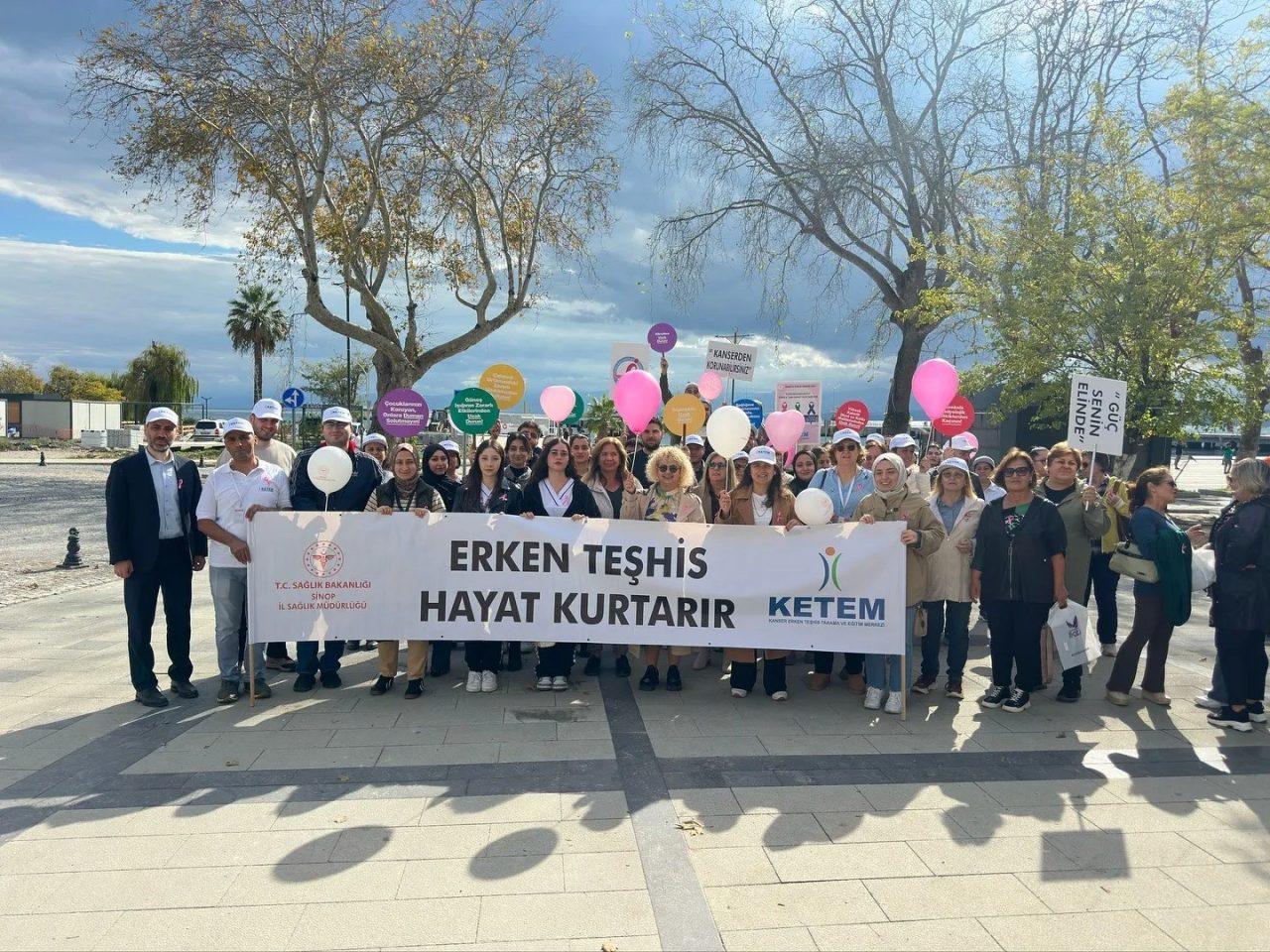 Sinop’ta “Meme Kanseri Farkındalık Ayı” kapsamında düzenlenen yürüyüşte vatandaşlara erken tanının önemi anlatıldı.