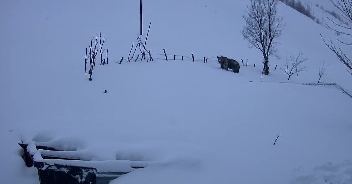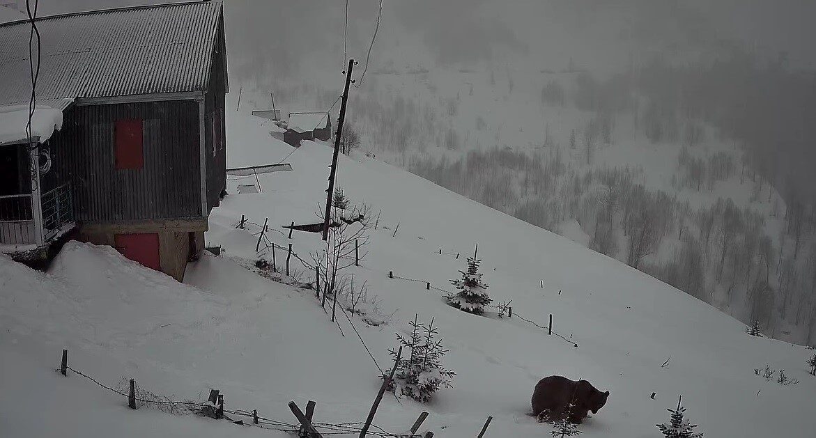 TRABZON VE GİRESUN SINIRINDAKİ 2 BİN 200 RAKIMLI SİS DAĞI YAYLASI’NDA, KIŞ UYKUSUNDAN UYANAN DEV BİR AYI YAYLA EVLERİNE DADANDI. O ANLAR, BİR YAYLACININ GÜVENLİK KAMERASINA SANİYE SANİYE YANSIDI.