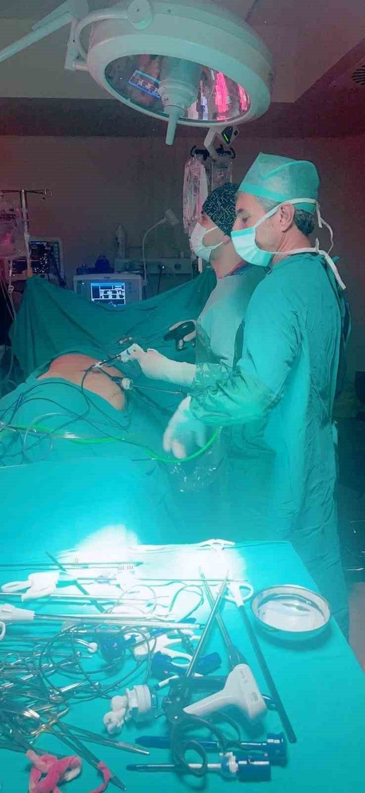Ünal, kameralar yardımı ile içeriye baktıklarını belirterek, “Bu ameliyatta hastamızda yaklaşık 3 tane kalem kadar giriş açıyoruz. Daha sonra böbreği çıkarmak için yaklaşık 3 ile 4 santimetrelik bir kese açıp oradan böbreği içerideki özel torbalarımızla dışarı alıyoruz. Şuanda hastamızın 3 tane kesi var. 2 tanesi 1 santimetre, 1 tanesi 3 ile 4 santimetre arasında bir kesisi var. Bu ameliyatlarda kalem girişi kadar girişlerle kameralarla içerisine baktık, hastanın böbrek çevresindeki dokuların yapışık olduğunu, anatominin bozulduğunu ve bu ameliyatın zor geçeceğini anlamıştık. Zor bir ameliyat oldu. Genel Cerrahi Uzmanımız Op. Dr. Levent Zirek Hocamla yaklaşık 2 saatlik bir ameliyat sonrasında işlemi neticelendirdik. Hastamız şuan ameliyattan sonra 4. gününde. İlk gün hastamızın sondasını çekmiştik, 3’inci gününde direnini çektik, şuanda üzerinde herhangi bir hortumu bulunmuyor. Tamamen eve gönderilecek şekilde hazır ama hastamızın kendi isteği üzerine sosyal endikasyonlardan dolayı hastayı biz 5’inci gün taburcu etme kararı aldık” diye konuştu.