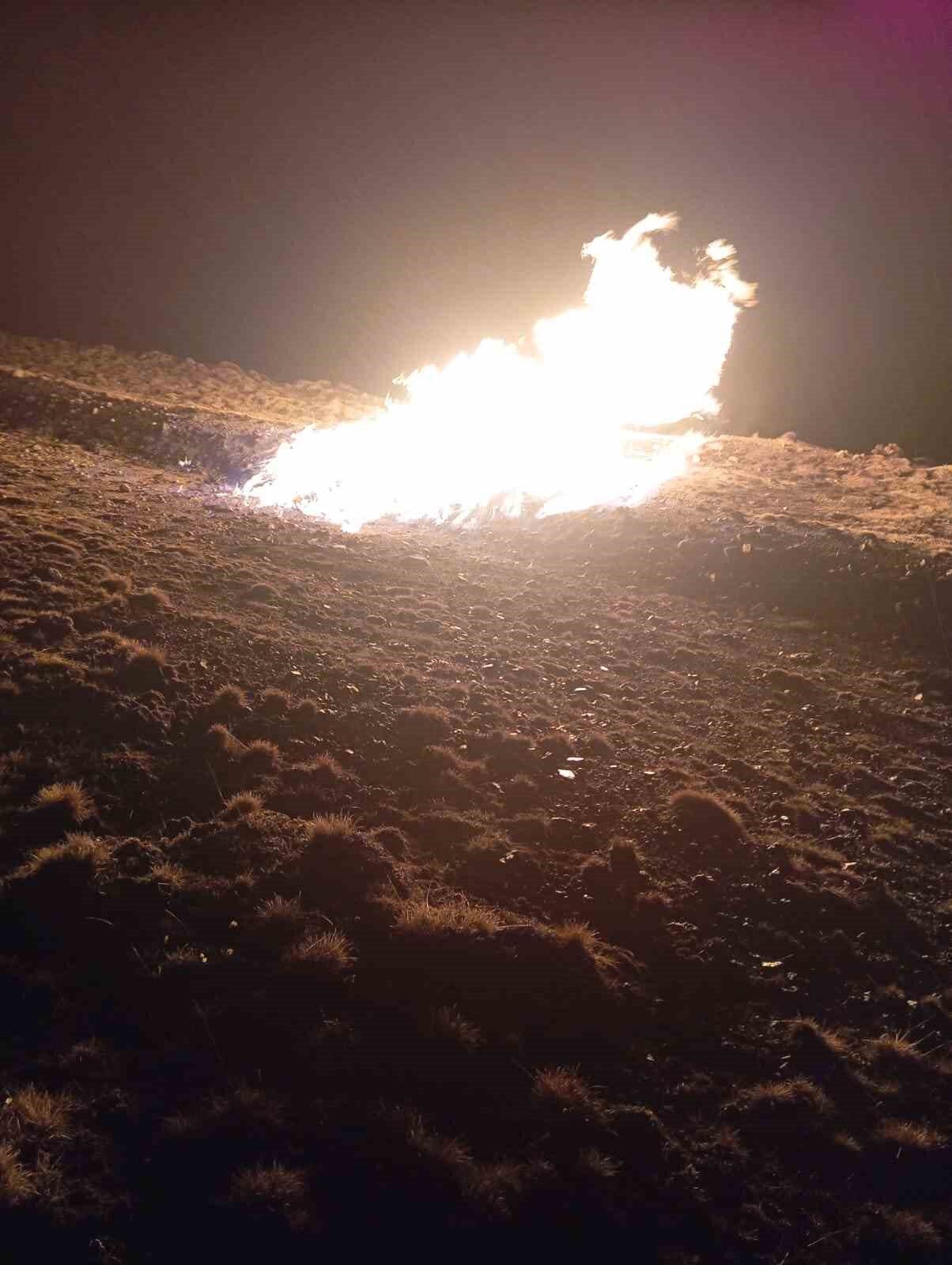 SİVAS’IN KOYULHİSAR İLÇESİ AĞCABEL YAYLASI CİVARINDAN GEÇEN ORDU-GİRESUN DOĞALGAZ İLETİM HATTINA YILDIRIM DÜŞMESİ SONUCU YANGIN ÇIKTI