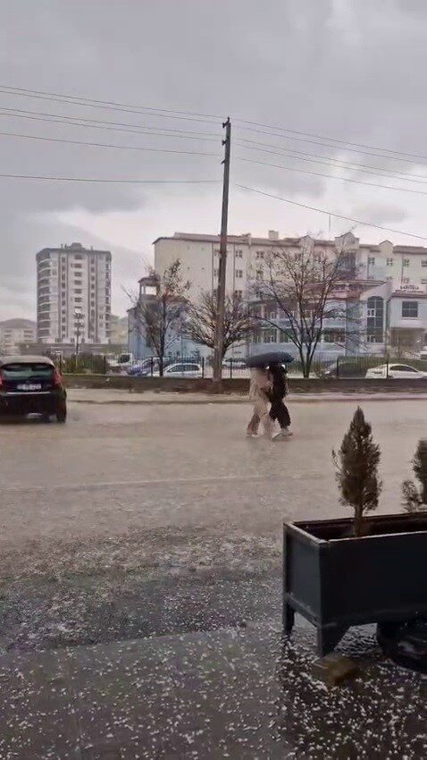 Sivas’ın Şarkışla ilçesinde öğle saatlerinde etkili olan yağmur, ilerleyen dakikalarda yerini doluya bıraktı. Kısa süre etkili olan dolu yağışı nedeniyle hayat durma noktasına geldi. Yağışa hazırlıksız yakalanan vatandaşlar ve araç sürücüleri zor anlar yaşadı. Dolu yağışı nedeniyle cadde ve sokaklar beyaza bürünürken, o anlar cep telefonu kamerasına yansıdı.