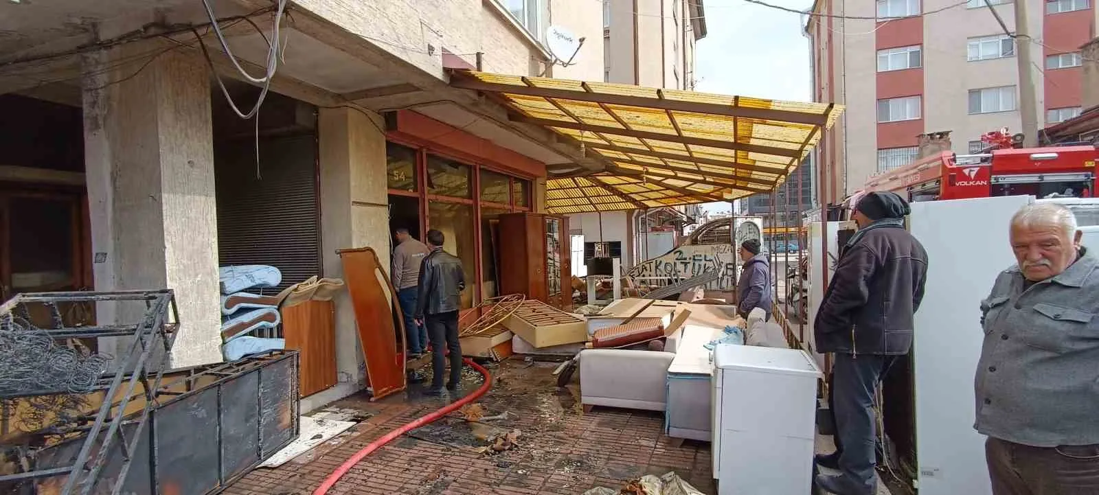 Sivas’ta ev eşyası satışı yapılan bir iş yerinde çıkan yangın paniğe neden olurken, yangında iş yerinde bulunan birçok eşya kullanılamaz hale geldi.