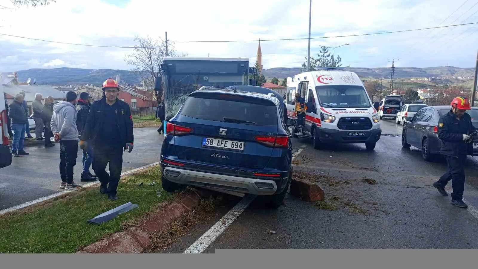 Edinilen bilgilere göre, olay, Karşıyaka Mahallesinde meydana geldi. 58 H 249 plakalı halk otobüsü, ana cadde üzerinde ilerlediği esnada tali yoldan çıkan 58 AFE 694 plakalı Seat marka cipe çarptı. Kazada cip sürücüsü F.N.Ç., ile otobüste bulunan K.K. ile F.K. yaralandı. Yaralıların durumunun iyi olduğu öğrenilirken kaza anı otobüsün içerisinde bulunan kameraya yansıdı. Çevredeki vatandaşların yardıma koştuğu anlar, saniye saniye kaydedildi.