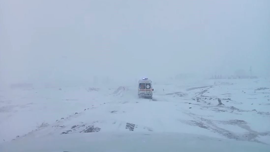Sivas’ta yaşadığı köyde rahatsızlanan hamile kadına ulaşmak için ekipler seferber oldu. İl Özel İdaresi ekipleri karla kaplı yolu açarak ambulansın hastaya ulaşmasını sağladı.