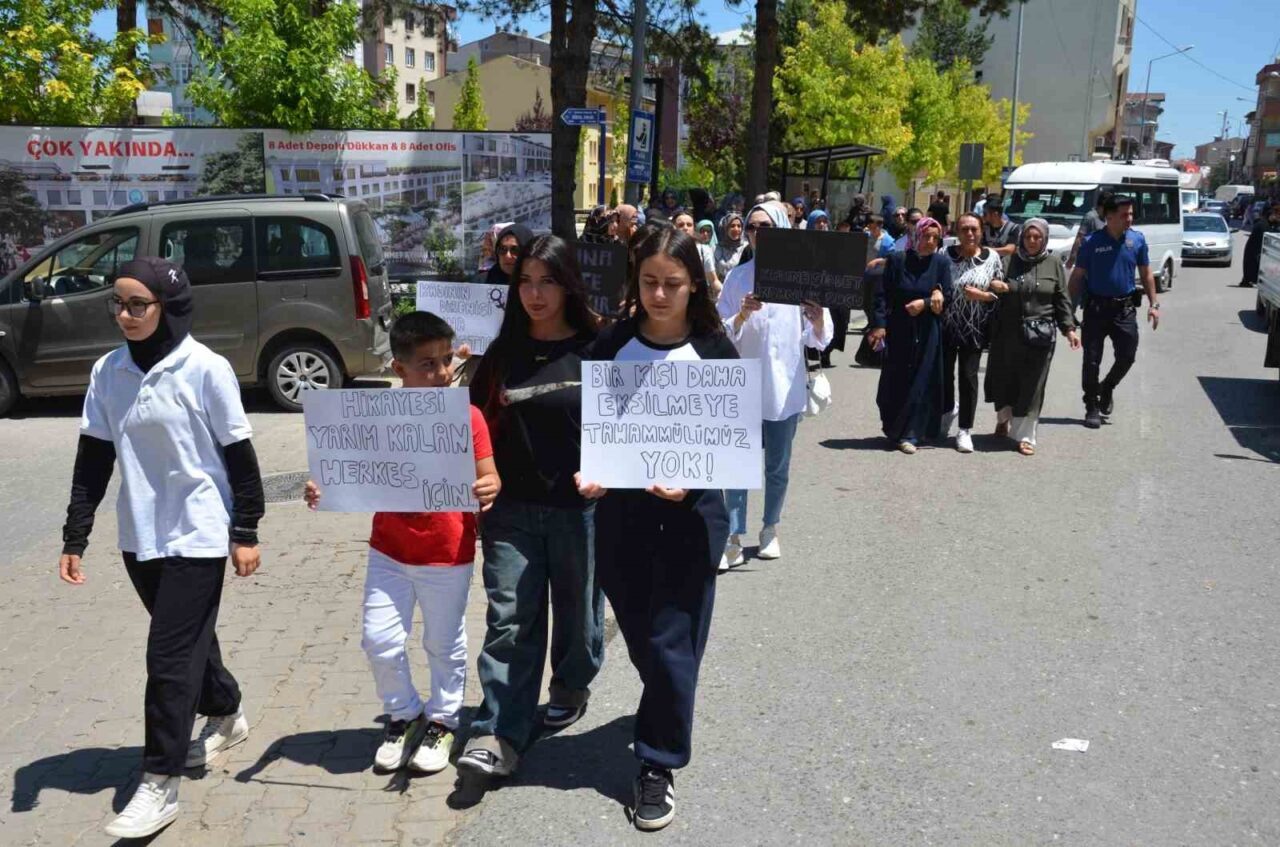 SİVAS’TA YATAĞINDA BAYGIN BULUNAN VE HASTANEDE HAYATINI KAYBEDEN 3 ÇOCUK ANNESİ GONCA ÖZDEMİR (33) İÇİN SUŞEHRİ İLÇESİNDE YÜRÜYÜŞ DÜZENLENDİ.