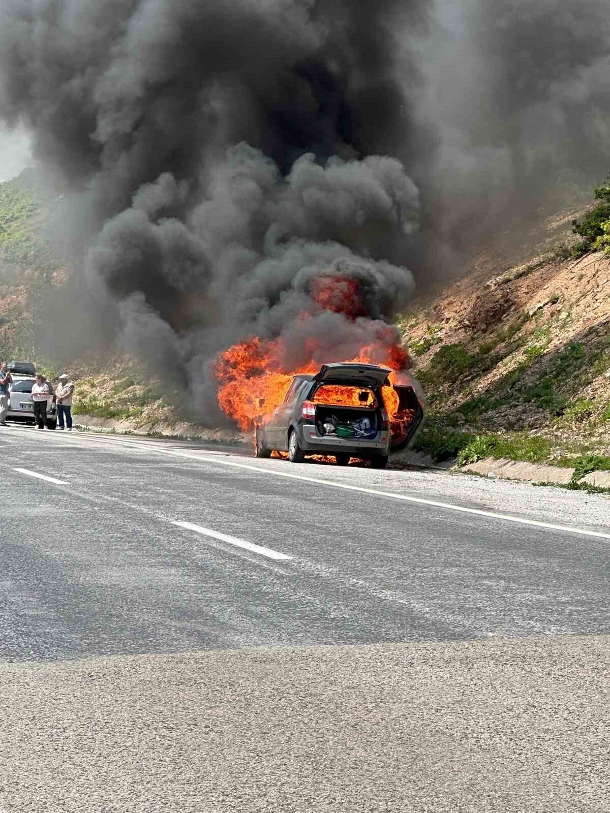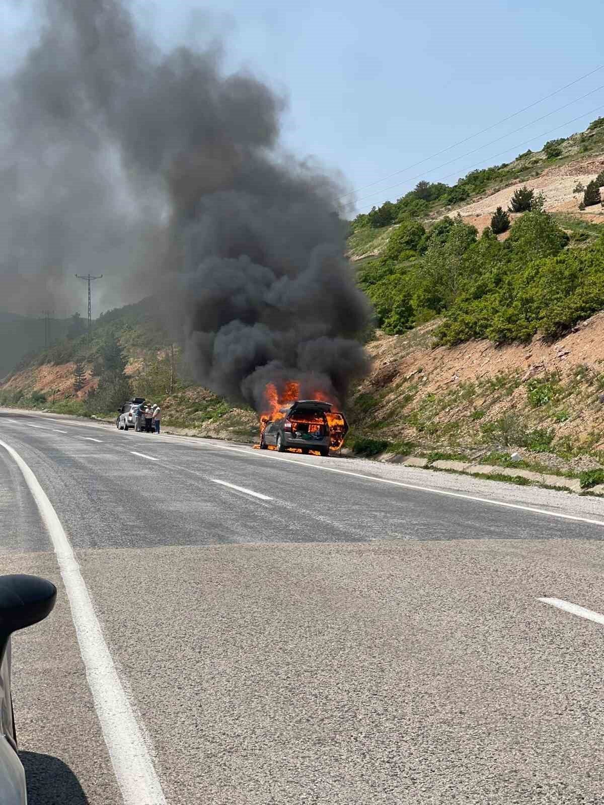 Sivas’ta seyir halindeyken alev alan otomobil kullanılamaz hale geldi. Araçta bulunan 4 kişi son anda kurtuldu.
