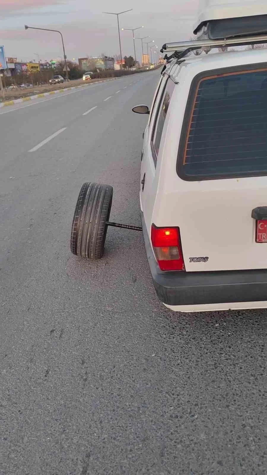Sivas’ta Tofaş marka otomobiliyle seyir halindeyken aracının aks kısmının kopması sonucu büyük bir tehlike atlatan sürücü, o anları kayda alarak sosyal medyada ilgi gördü.