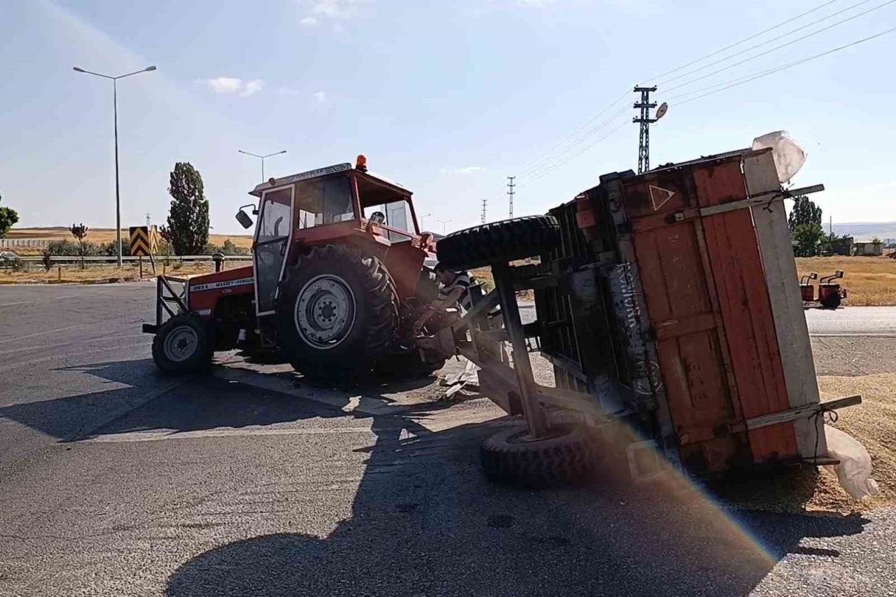 Edinilen bilgilere göre, ilk kaza, Sivas-Kayseri Karayolu Şarkışla ambulans yolu kavşağında Y.A.(55) idaresindeki 58 HG 077 plakalı arpa yüklü traktör ile E.Ş.(27) 34 CGC 690 plakalı otomobil çarpıştı. İhbar üzerine olay yerine Sağlık ve Polis ekipleri sevk edildi. Kazada otomobil sürücüsü E.Ş. ile birlikte aynı araçta bulunan O.Ş.(27) ve Ş.Ş. (63) yaralandı.