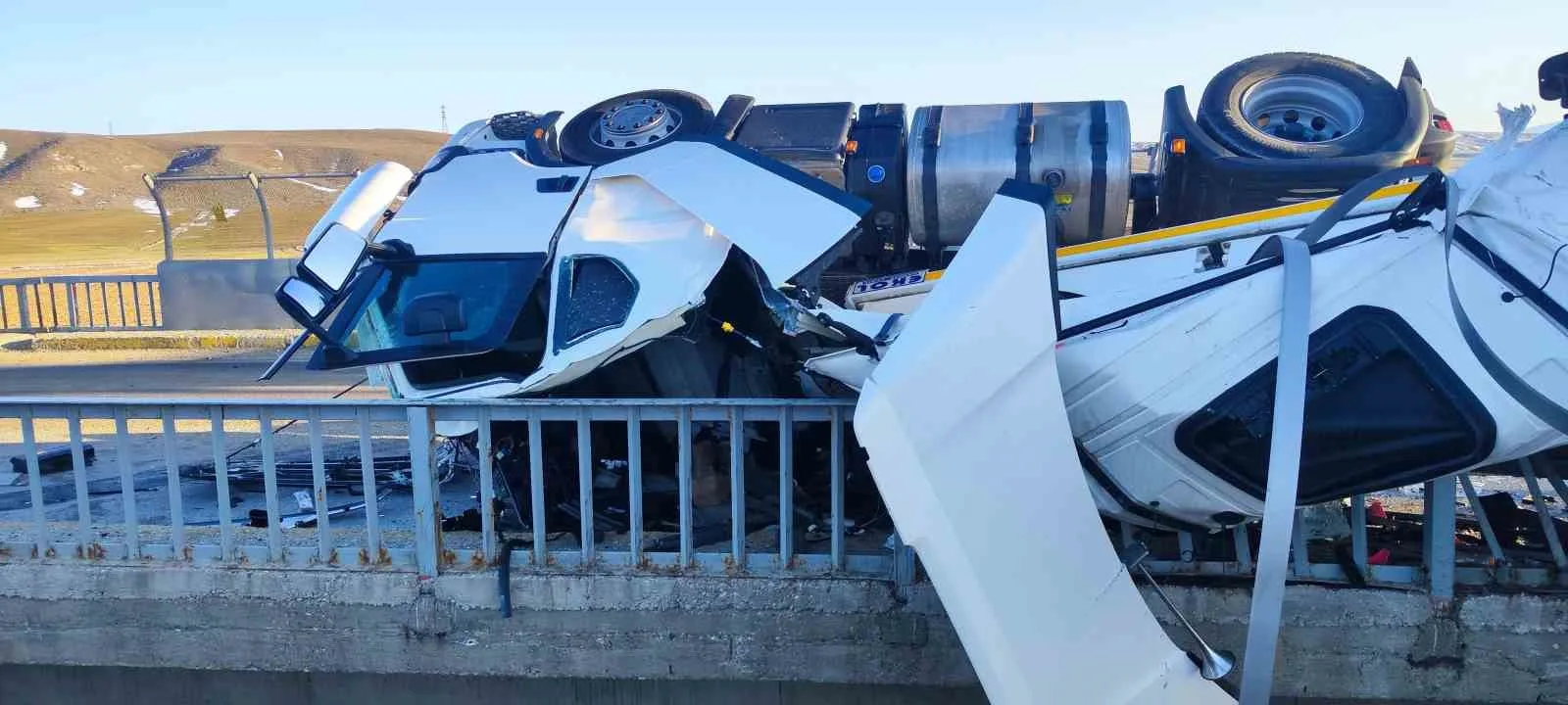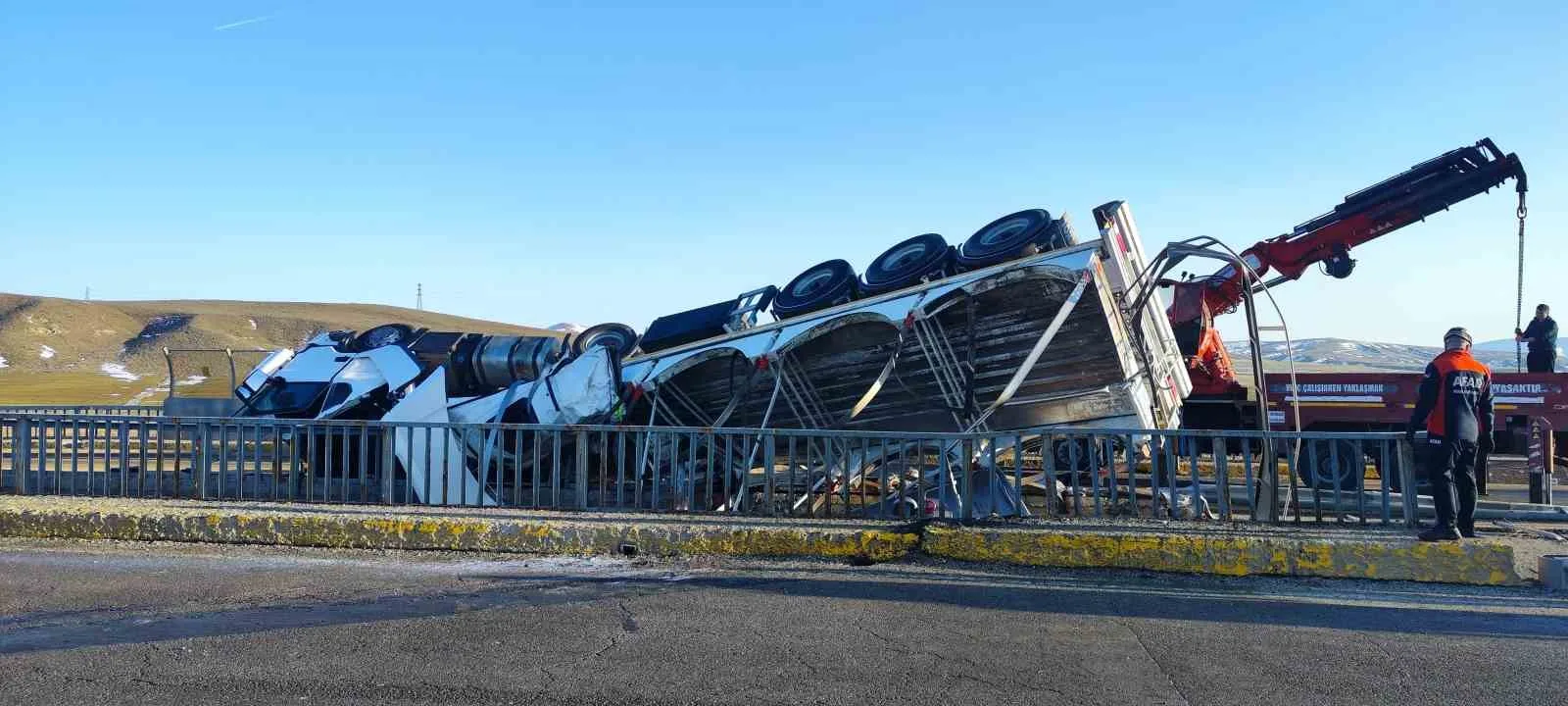 SİVAS’TA SÜT YÜKLÜ TIR DEVRİLDİ, KÖPRÜNÜN KORKULUKLARINDA ASILI KALAN TIRIN SÜRÜCÜSÜ OLAY YERİNDE ÖLDÜ.