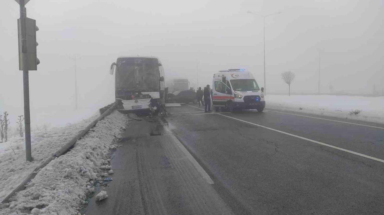 SİVAS’TA BİR YOLCU OTOBÜSÜ İLE OTOMOBİLLERİN KARIŞTIĞI ZİNCİRLEME TRAFİK KAZASINDA YARALILARIN OLDUĞU ÖĞRENİLDİ.