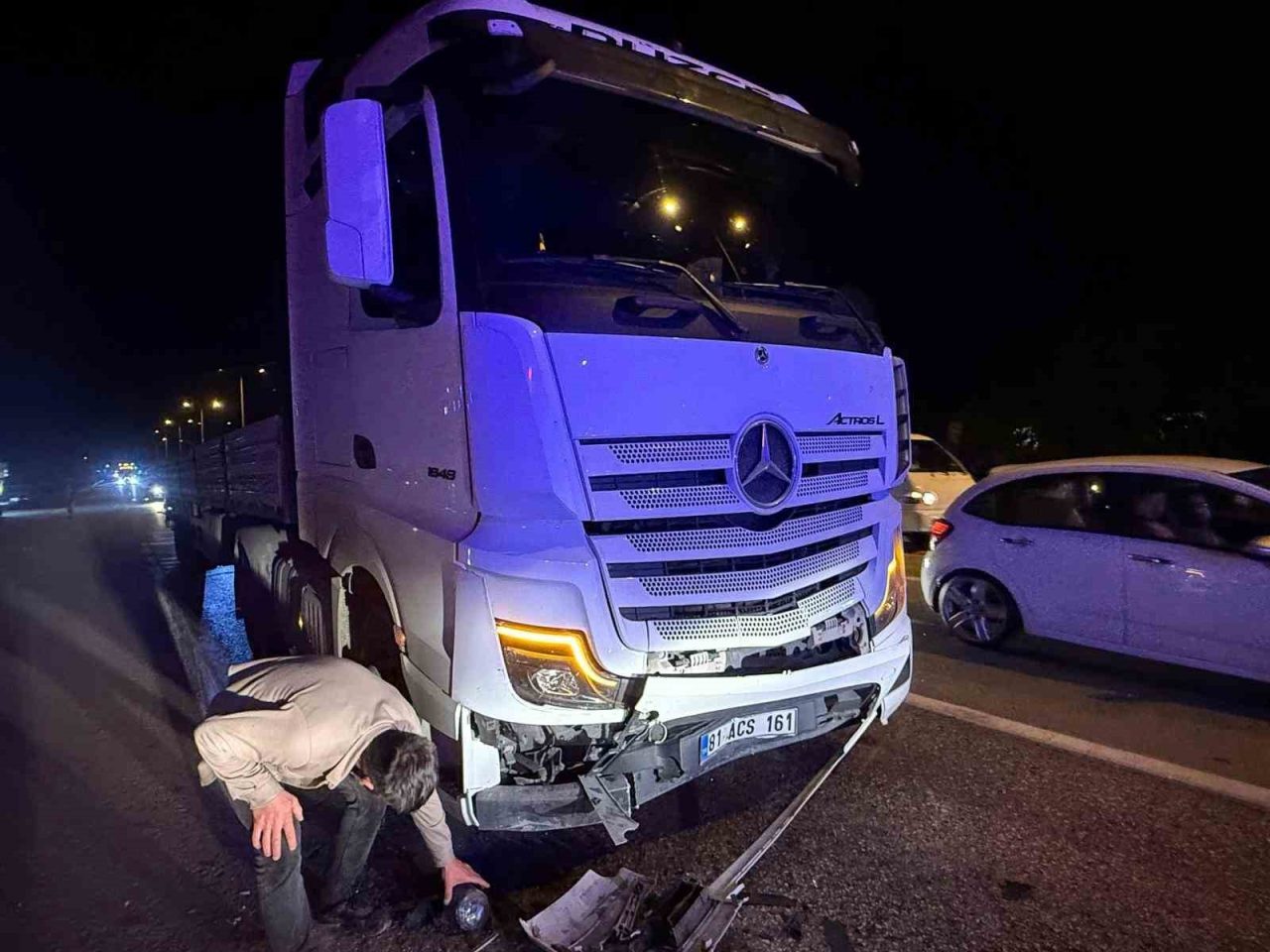 100 karayolunda kırmızı ışıkta bekleyen otomobile kamyon çarptı. Savrularak karşı şeride geçen ve tırın çekici kısmına çarpan otomobil adeta kağıt gibi ezilerek hurdaya döndü. Sadece şoför mahallinin sağlam kaldığı araçtan yaralı çıkan sürücü, yürüyerek ambulansa gitti.
