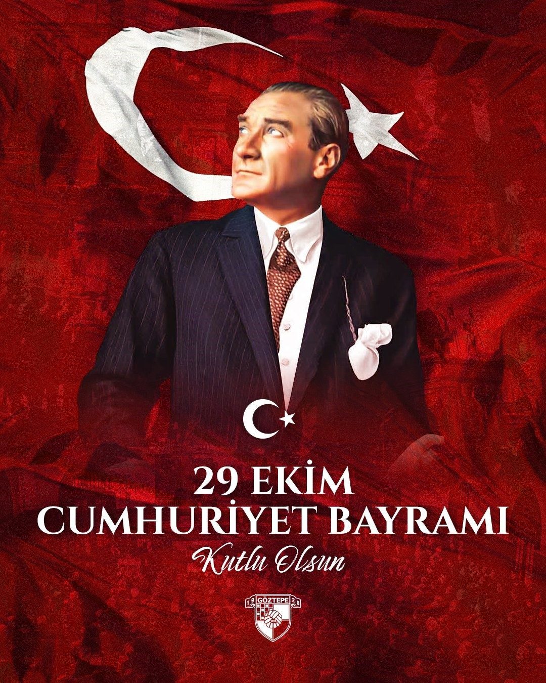“102 yıl önce milletçe yazdığımız destan; özgürlüğün, birlikteliğin ve çağdaş bir geleceğe olan inancın simgesidir. Cumhuriyet, ortak değerlerimizin, dayanışmamızın ve geleceğe duyduğumuz umudun adıdır. Fenerbahçe Spor Kulübü olarak, kurulduğumuz günden bu yana Cumhuriyetimizin temel ilkelerini yaşatmayı; her nesle, Atatürk’ün izinde bir geleceği miras bırakmayı görev bildik. Sporun birleştirici gücüyle, bu toprakların çocuklarına umut olmayı ve aydınlık yarınlara katkı sunmayı sürdürüyoruz. Cumhuriyetimizin 102. yılında bir kez daha gururla haykırıyoruz: Biz bu ülkenin, bu değerlerin, bu büyük mirasın neferleriyiz. 29 Ekim Cumhuriyet Bayramımızı kutluyor; Başta Ulu Önderimiz Mustafa Kemal Atatürk olmak üzere silah arkadaşlarını ve vatanımız uğruna canlarını veren tüm şehitlerimizi sonsuz saygı ile anıyoruz.”