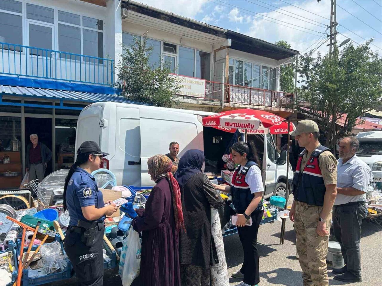 Vatandaşlara broşür dağıtılarak bilinçlendirme çalışmaları yapılırken, kadınların karşılaşabilecekleri şiddet durumlarında sessiz kalmamaları ve hukuki haklarını aramaları gerektiği belirtildi.