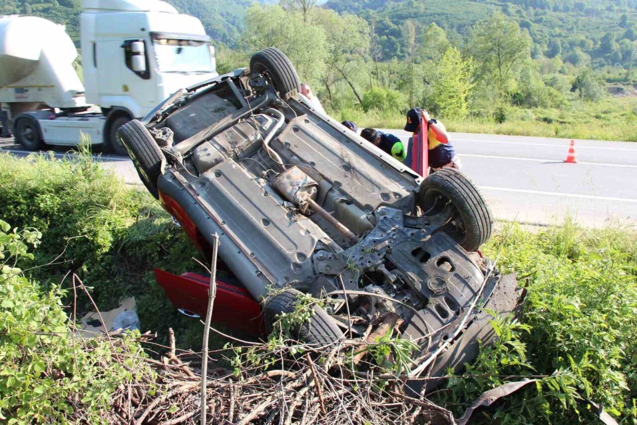 Sakarya’nın Akyazı ilçesinde kontrolden çıkan otomobil takla attı. Ailenin ölümden döndüğü kazada 1’i bebek 4 kişi yaralandı.