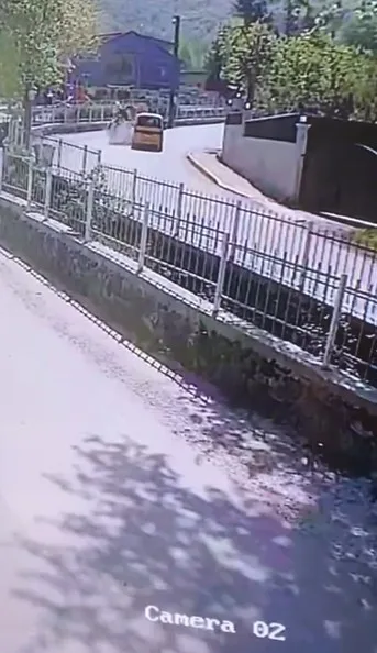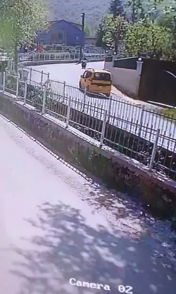 Kaza anı, çevredeki bir güvenlik kamerasına yansıdı. Görüntüde, çarpışmanın şiddetiyle motosiklet sürücüsünün savrulduğu, taksi sürücüsünün de araçtan inerek yaralının yardımına gittiği anlar yer aldı.