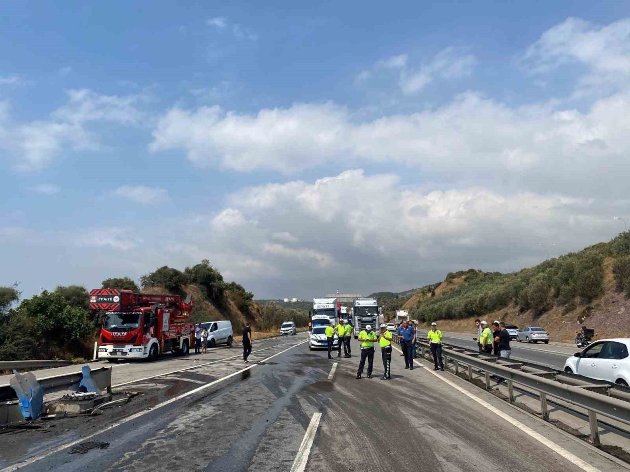 Kocaeli’nin Dilovası ilçesi D100 geçişinde, sürücüsünün kontrolünü kaybettiği tanker, bariyerlere dalarak makasladı. Sürücü yaralanırken tankerde bulunan yağ yola döküldü.
