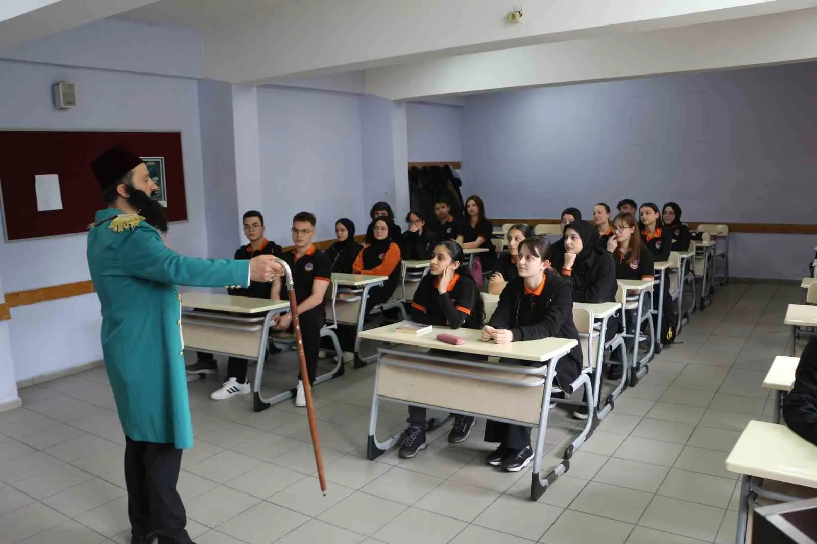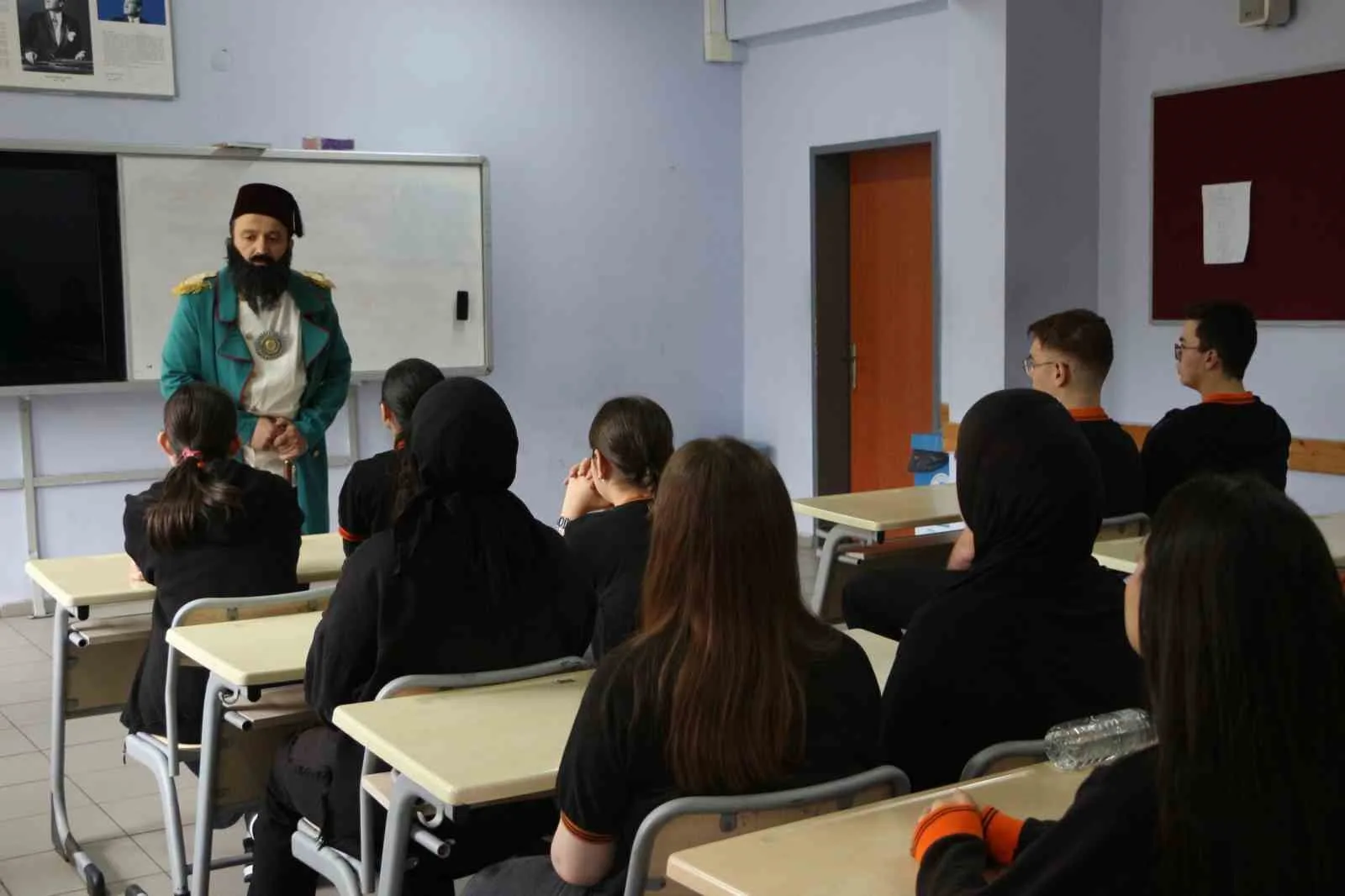 Rize’de Tarih Öğretmeni Ender Okur derste anlatacağı Türk büyüğünün kılığına girerek çocuklara akıllarda kalıcı eğitim sağlıyor.