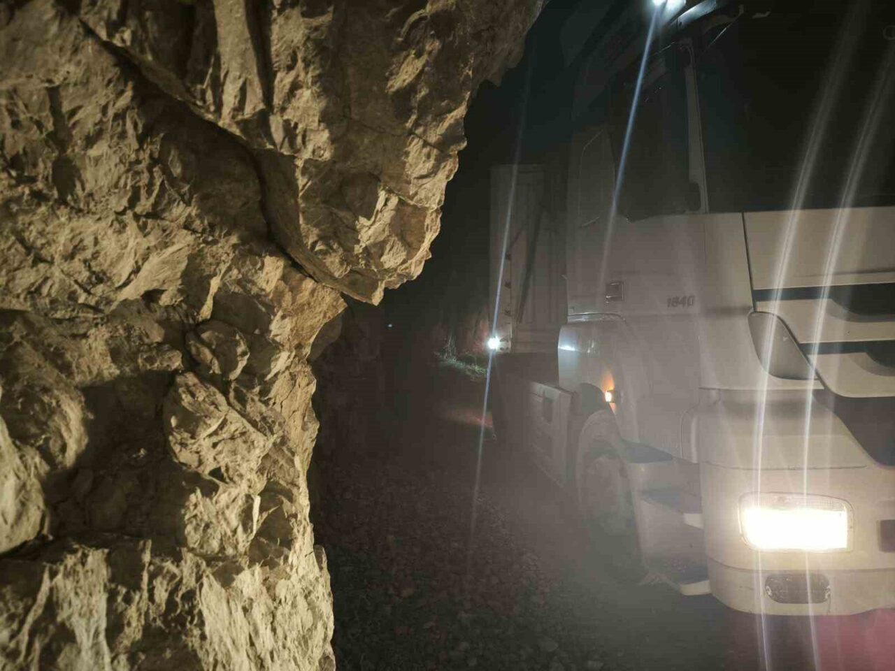 Gümüşçeşme köyünden ilçe merkezine seyreden 33 BAN 75 plakalı tır, ilçeye 3 kilometre kala Base-Jump bölgesindeki tünellerde sıkıştı.