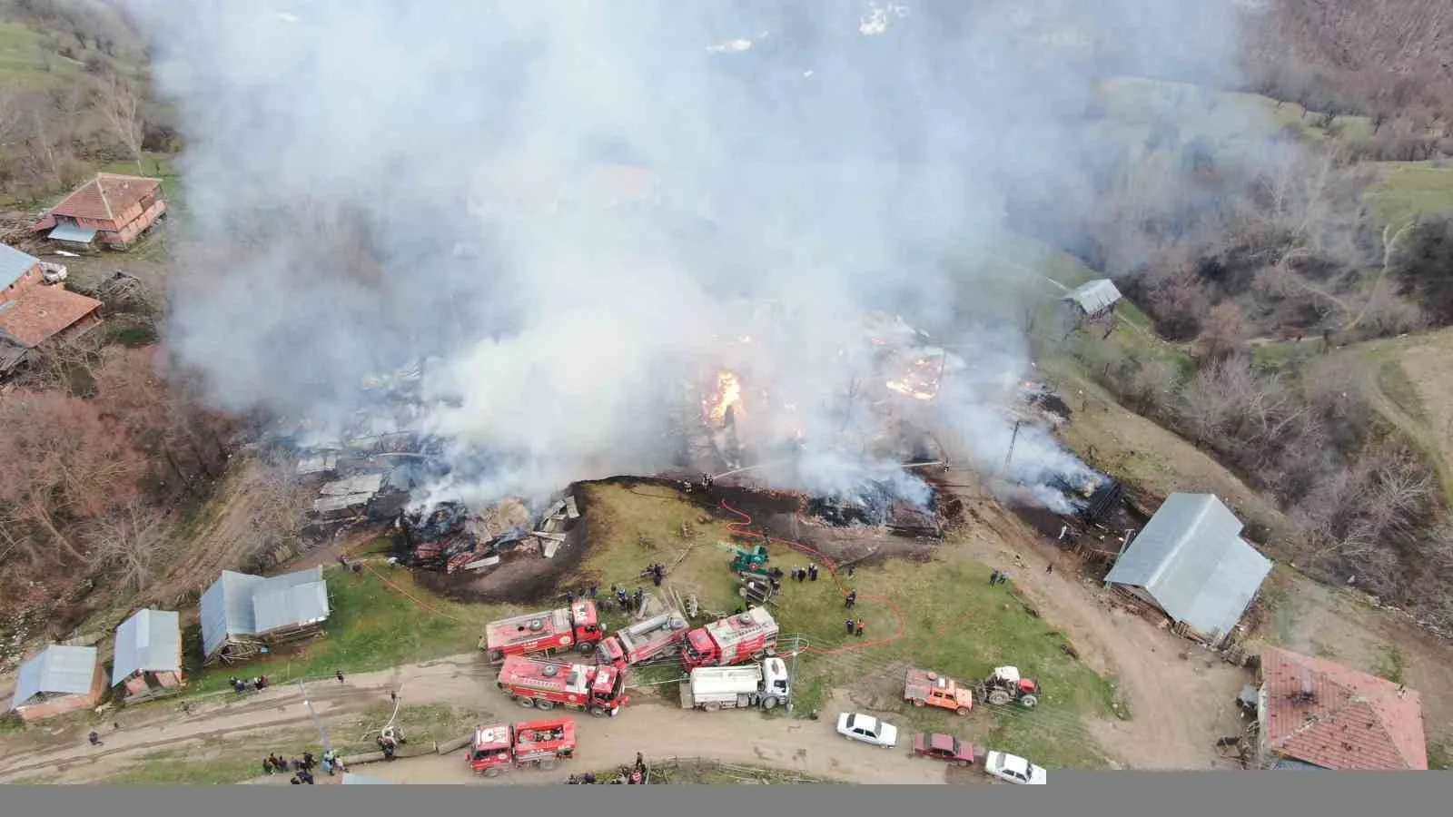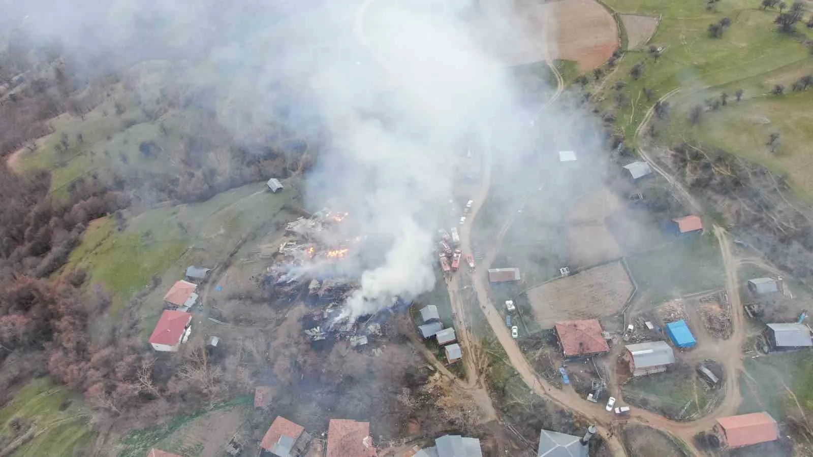 KASTAMONU’NUN TAŞKÖPRÜ İLÇESİNDE AHIRDAN ÇIKTIĞI TAHMİN EDİLEN YANGINDA 3 EV, 6 AHIR, 9 SAMANLIK VE 2 AMBAR YANARAK KULLANILAMAZ HALE GELDİ. ÇOK SAYIDA İTFAİYE EKİBİNİN MÜDAHALE ETTİĞİ YANGIN KONTROL ALTINA ALINDI.