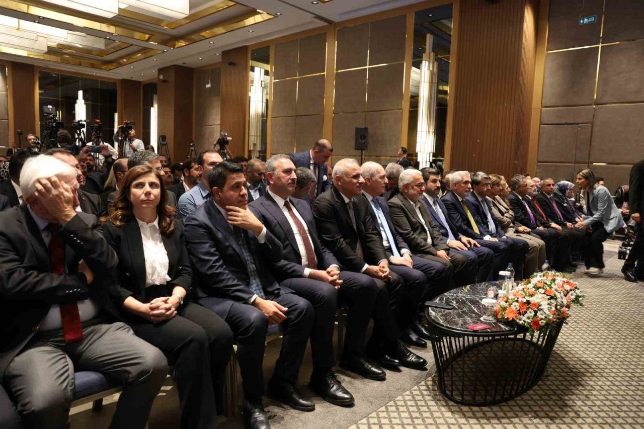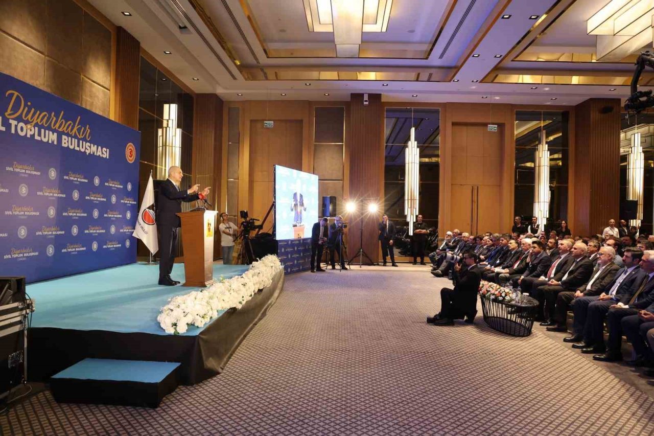 “Türkiye Büyük Millet Meclisi’nde de beş siyasi parti grubu, grubu bulunmayan altı parti yani Türkiye Büyük Millet Meclisi’ndeki arkadaşlarımızın bir kısmı da burada. 11 siyasi farklı siyasi parti bir araya gelerek sürekli bir mesai harcadı. Hakikaten fevkalade takdire şayan bir mesaiyle 5 Ağustos’tan bu yana 15 farklı oturum düzenledik. Toplumun farklı kesimlerinin insanlar dinlendi. Bu dinlenenlerin arasında STK’lılar, kanaat önderleri oldu. 16 STK temsilcisi de Diyarbakır ilimizden katılan yani Diyarbakır merkezli kuruluşlarımız vasıtasıyla dinlediğimiz arkadaşlarımız oldu. Herkes bir şey söyledi. Herkes kendi bulunduğu yerden, kendi anlayışı çerçevesinde söyledi ve herkes de saygıyla dinledi. Ama bir tek kişi bile artık barış olmasın savaşlar durmasın, bu terör bitmesin, Türkiye bu mücadeleyle, bu terörle yıllarını heba etsin diye kimseden bir teklif gelmedi. Herkes terörün bitmesini, silahların susmasını, kardeşliğin hakim olmasını isteyen temennilerde bulundular. Bir kısmı açık tekliflerde bulundular. Bunların hepsi de Türkiye Büyük Millet Meclisi’nin şu anda kayıtları altında, zabıtları altında büyük bir müktesebat oluştu. Değerli kardeşlerim, şunu söyleyebilirim, bu vesileyle hem bu komisyon öncesindeki çalışmalarımızda hem de komisyon sırasında dünyadaki birçok çatışma çözümleri örneklerini çok yakın tanımış oldum. Şunu rahatlıkla söyleyebilirim dünyadaki yani devletlerle örgütler arasındaki çatışmanın bitirildiği çözüm süreçlerinde ortalama 6 yılda, 7 yılda bazılarının ise daha yüksek uzun bir sürede geldiği noktaya Türkiye inanın ki işte Ekim 2024’ten alırsanız bir yılı aşmadan o süreyi oraya gelmiş oldu. Ve çok şükür parlamentoda bu konuyla ilgili bir komisyonun oluşması, bu komisyonun da partilerin hepsinin bir tanesi hariç hepsinin ortak iradesiyle oluşması fevkalade değerlidir. Şimdi geldiğimiz noktada daha dikkatli, daha titiz olmamız gereken bir sürece girdiğimizi açıklıkla ifade etmek isterim. Öncelikle bundan sonraki süreçte ortaya çıkmış olan bu fevkalade olumlu süreci ben inanıyorum bu salonda hemen herkes sürece olumlu yaklaşıyor. Öyle mi? Ama kusura bakmayın olsun diye isteyenler olduğu gibi olmasın diye de kenarda köşede bekleyenler var. Onun için dikkatli olacağız. Öncelikle birkaç şeyi bu sürece ilişkin sizin vasıtasıyla vasıtanızla da bütün Türkiye kamuoyuyla paylaşmak isterim. Herkes kullandığı dile dikkat etmek zorundadır. Karşımızdakini gelinen bu noktada incitmemek için, yanlış bir şey söylememek için, hatalı bir şey söylememek için herkesin diline dikkat etmelidir.’’