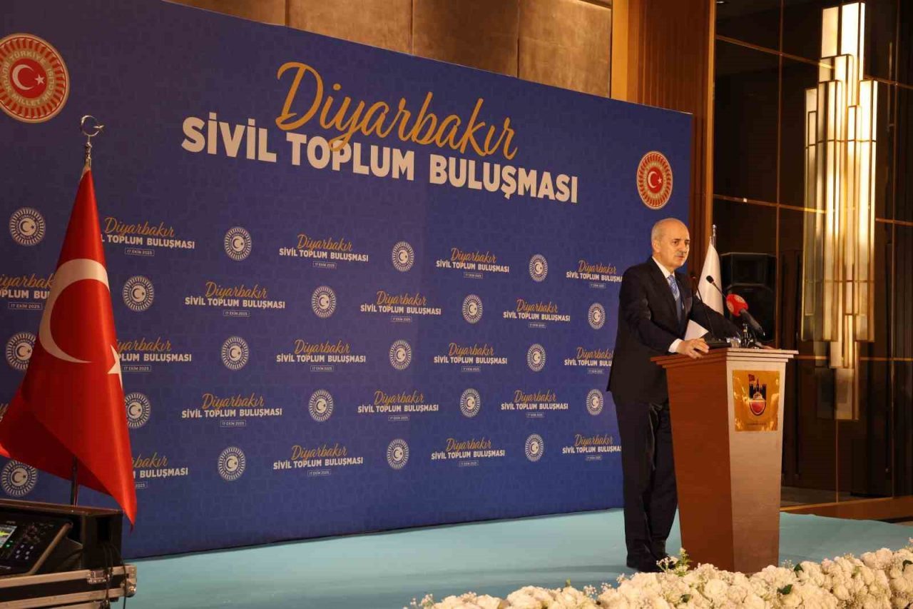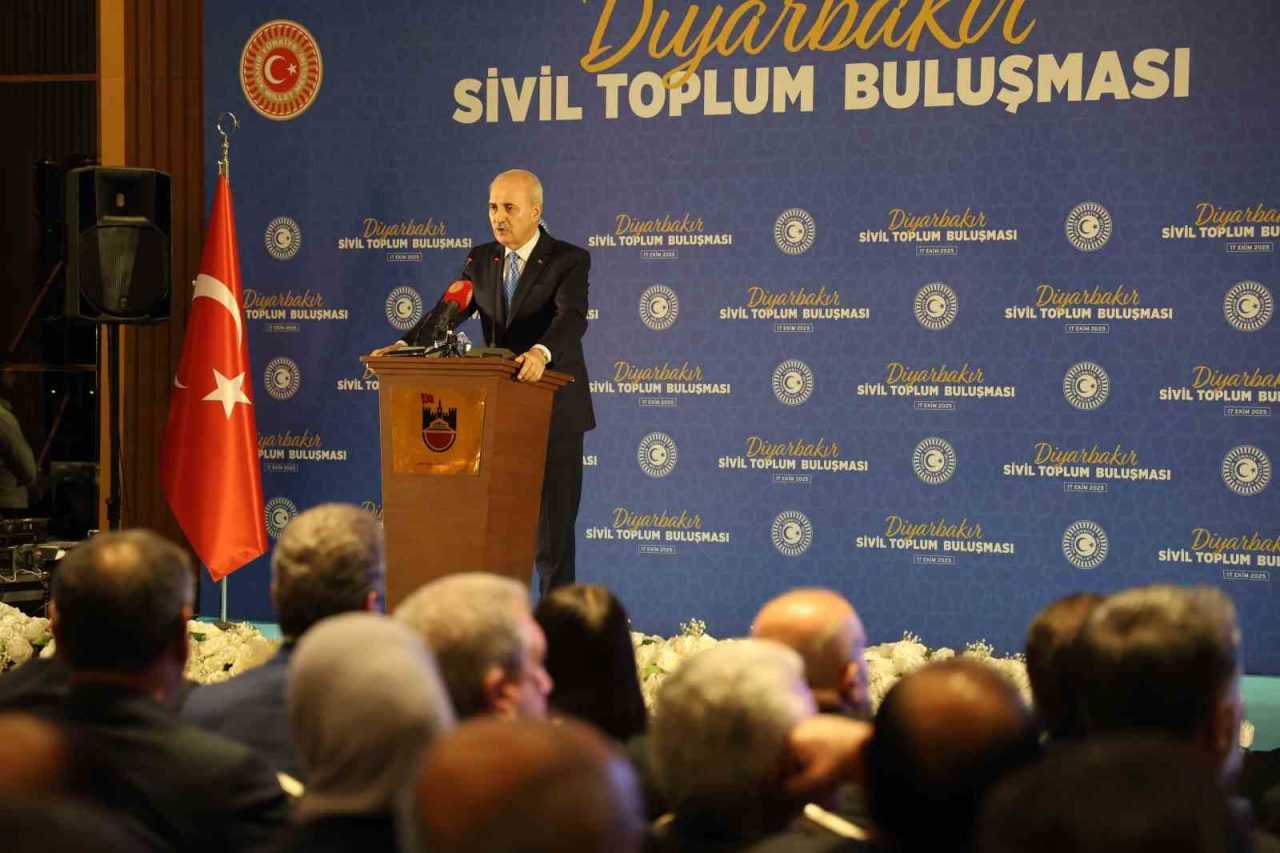 TBMM BAŞKANI NUMAN KURTULMUŞ, DİYARBAKIR’DA GERÇEKLEŞTİRİLEN SİVİL TOPLUM BULUŞMASINDA YAPTIĞI AÇIKLAMADA, ‘’ ÜMİT EDERİZ Kİ, EN KISA ZAMANDA ARTIK İLANİHAYE HİÇBİR ŞEKİLDE SİLAHLARIN KONUŞMADIĞI, SADECE İNSANLAR ARASINDA ESENLİĞİN, BARIŞIN, KARDEŞLİĞİN KONUŞULDUĞU VE GELİŞMENİN, KALKINMANIN, İLERLEMENİN, GELECEK NESİLLERE DAHA İYİ BİR TÜRKİYE, GELECEK NESİLLERE DAHA İYİ BİR DİYARBAKIR BIRAKMANIN KONUŞULDUĞU BİR DÖNEME GİRMİŞ OLURUZ’’ DEDİ.