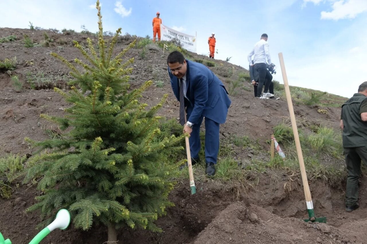 Erzurum Vali Yardımcısı Ahmet Özdemir’in katılımıyla gerçekleştirilen etkinlikte, TBMM’nin 105. yılı anısına 105 bin fidan toprakla buluştu.